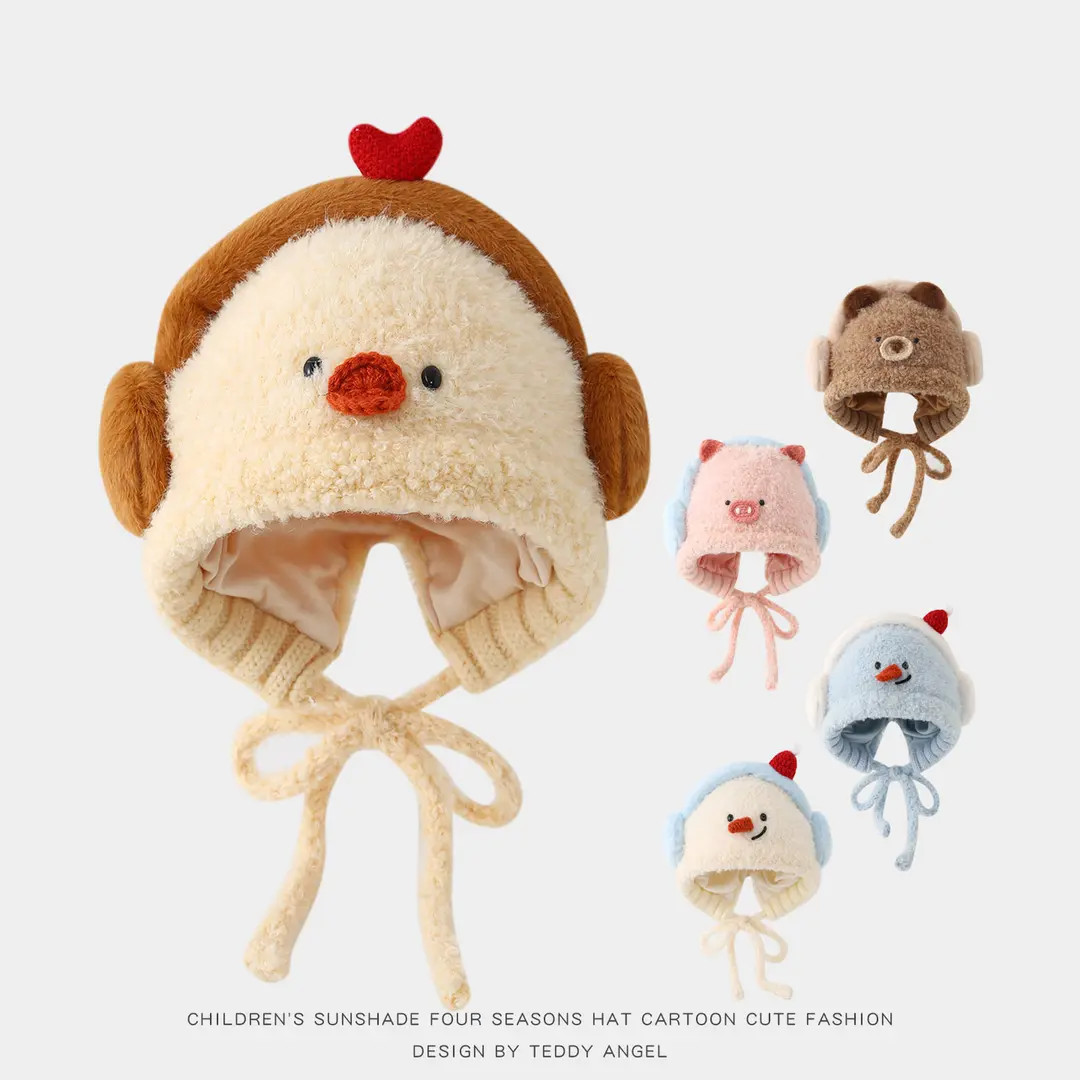 秋冬季大嘴丁丁护耳可爱针织帽保暖百搭帽甜美雪人小鸡毛绒毛线帽