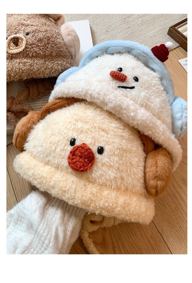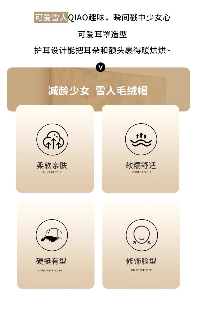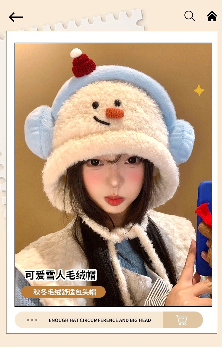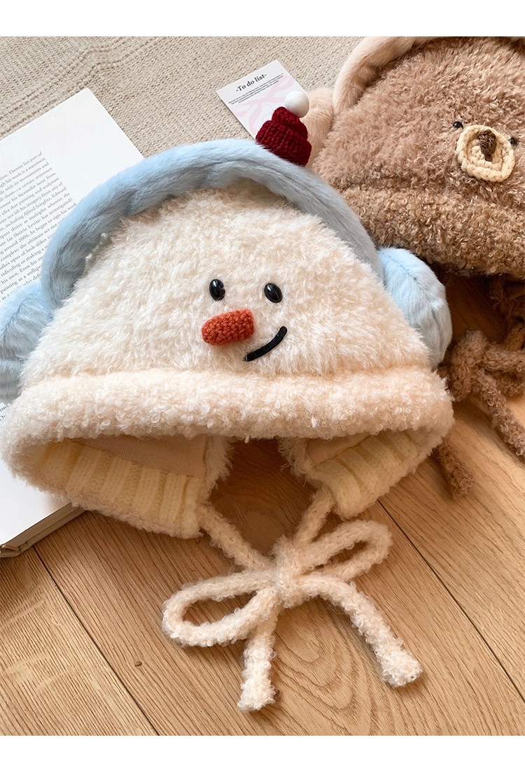 2025年冬季新款可爱小雪人百搭好看加绒加厚保暖毛绒帽奶油甜妹风