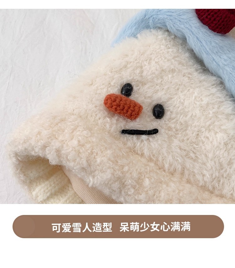 可爱小雪人卡通毛绒套头帽子女冬季保暖绑带护耳帽骑车防寒包头帽