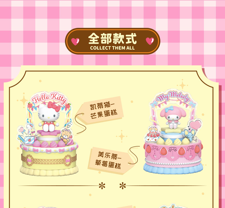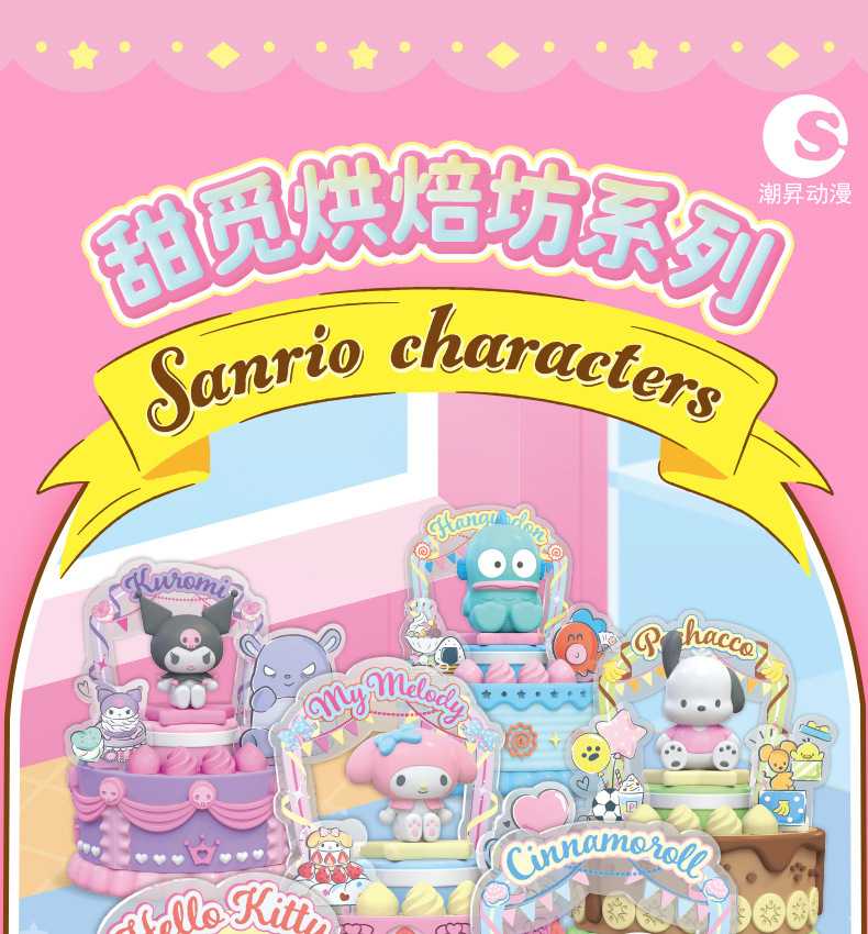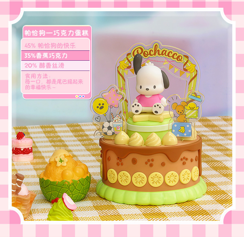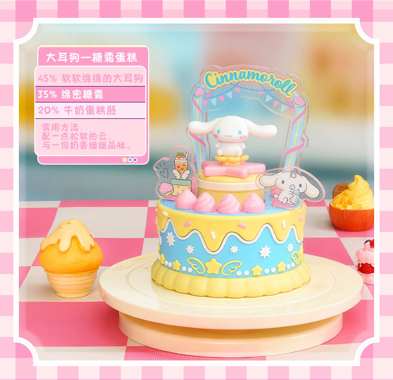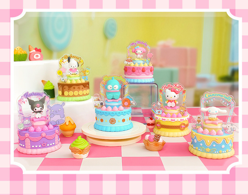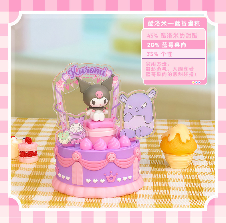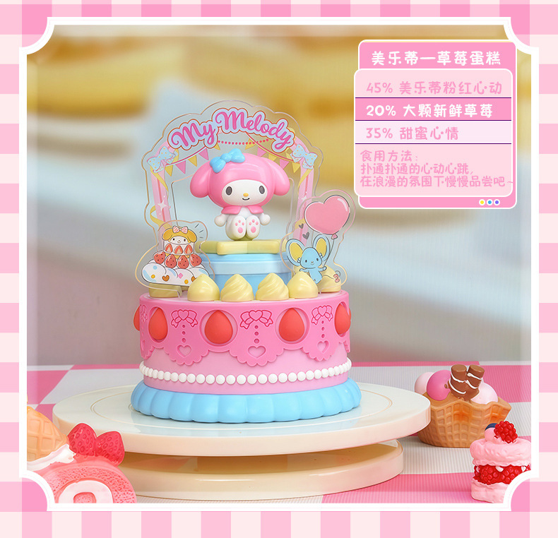 潮昇动漫三丽鸥家族周边甜觅烘焙坊声光旋转蛋糕盲盒女孩潮玩摆件