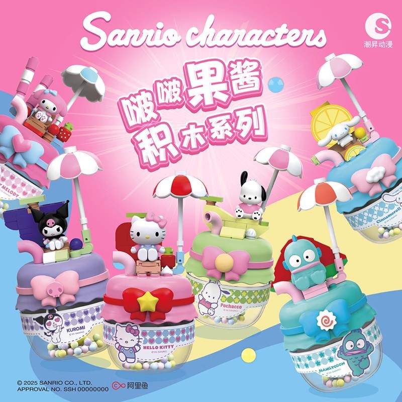 潮昇动漫三丽鸥家族啵啵果酱拼装积木盲盒半人鱼摆件潮玩女孩礼物