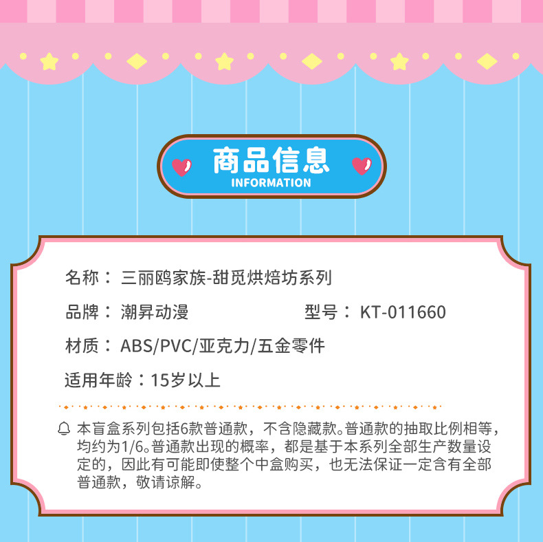 颜色 三丽鸥甜觅烘焙坊系列盲盒随机1个(整盒拍6),三丽鸥家族啵啵果酱系列盲盒随机1个(整盒拍6)