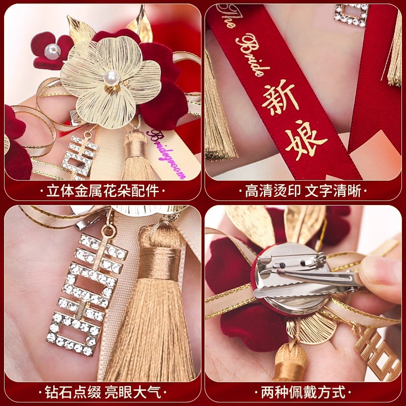 全套新郎新娘结婚胸花精致高档襟花父亲母亲贵宾胸针中式婚礼