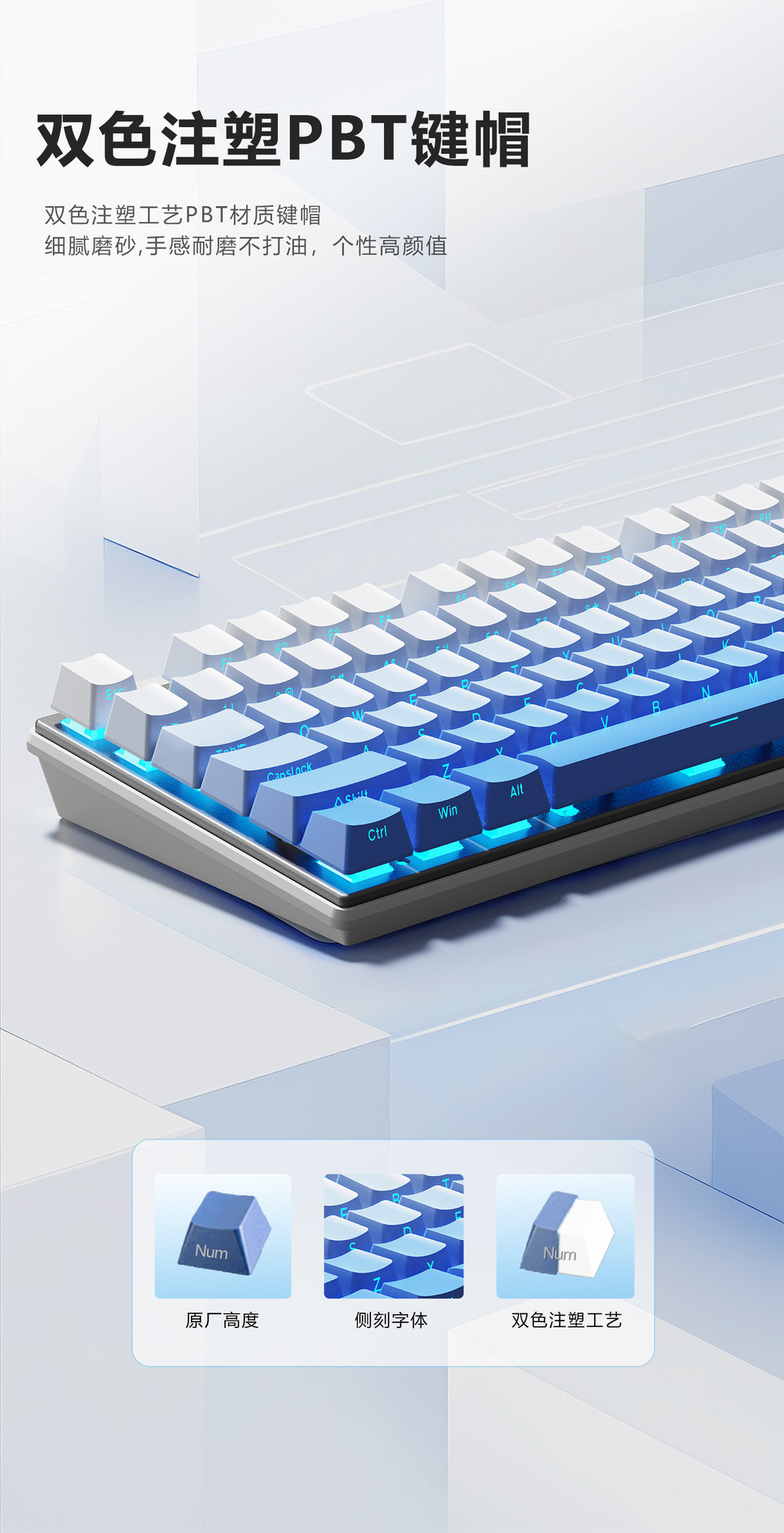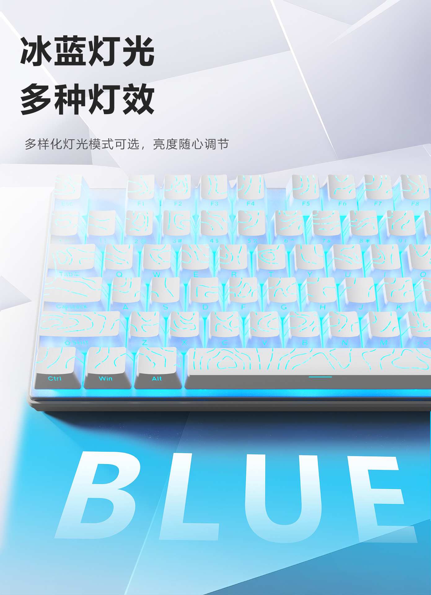 工厂现货等高线热插拔冰蓝光机械键盘电竞游戏办公用侧刻有线键盘