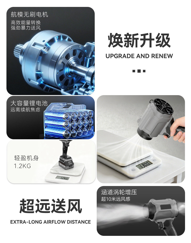 暴力涡轮风扇强力吹风机锂电暴风机吹雪机除灰尘风枪工业级鼓风机