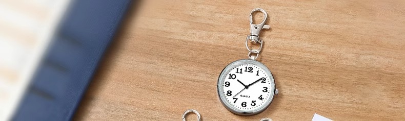 公務員大学院入試専用時計 女子学生用 静音針 メンズ ミニキーホルダー シンプルナースウォッチ