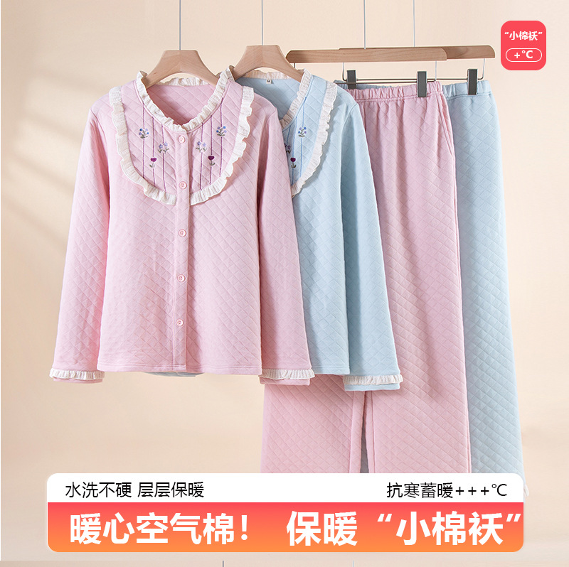 空气棉睡衣女秋冬季2025新款甜美风三层夹棉加厚家居服套装可外穿