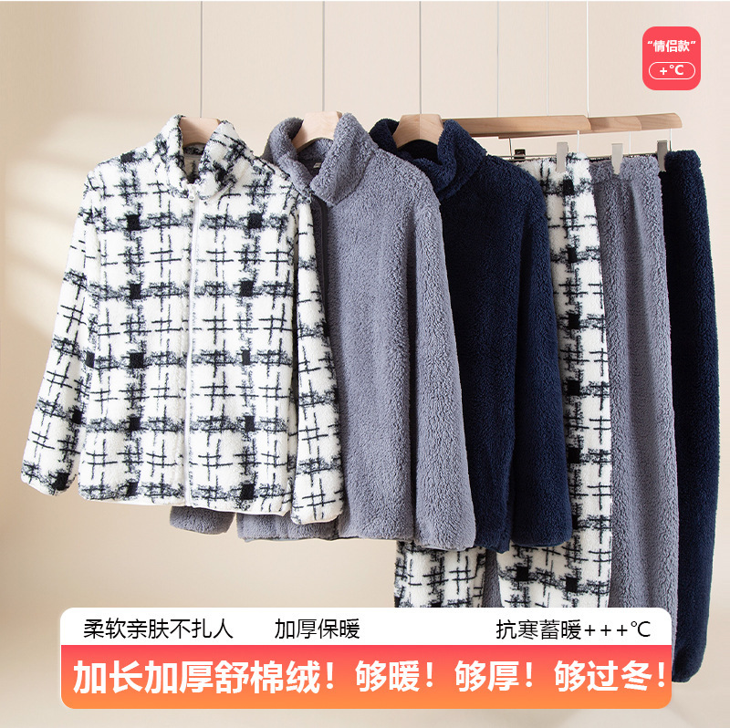 舒绒棉睡衣秋冬情侣款2025新款无印风加厚男女款家居服套装可外穿