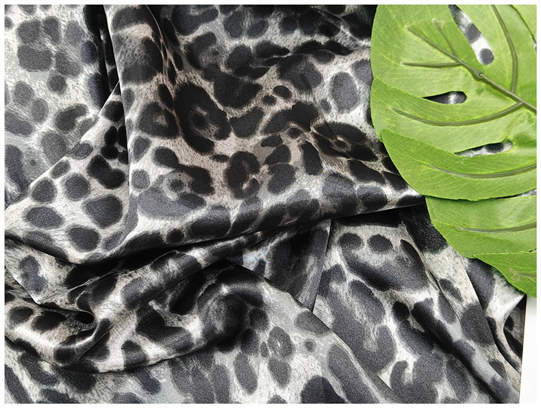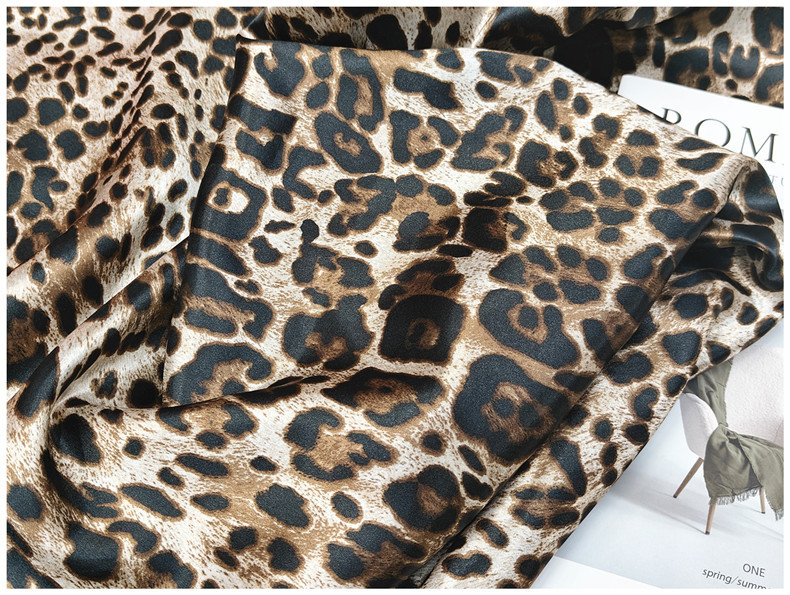 レオパード柄プリント生地、サテン模造シルクプリント生地、衣類裏地、リボン、包装、帽子、枕生地