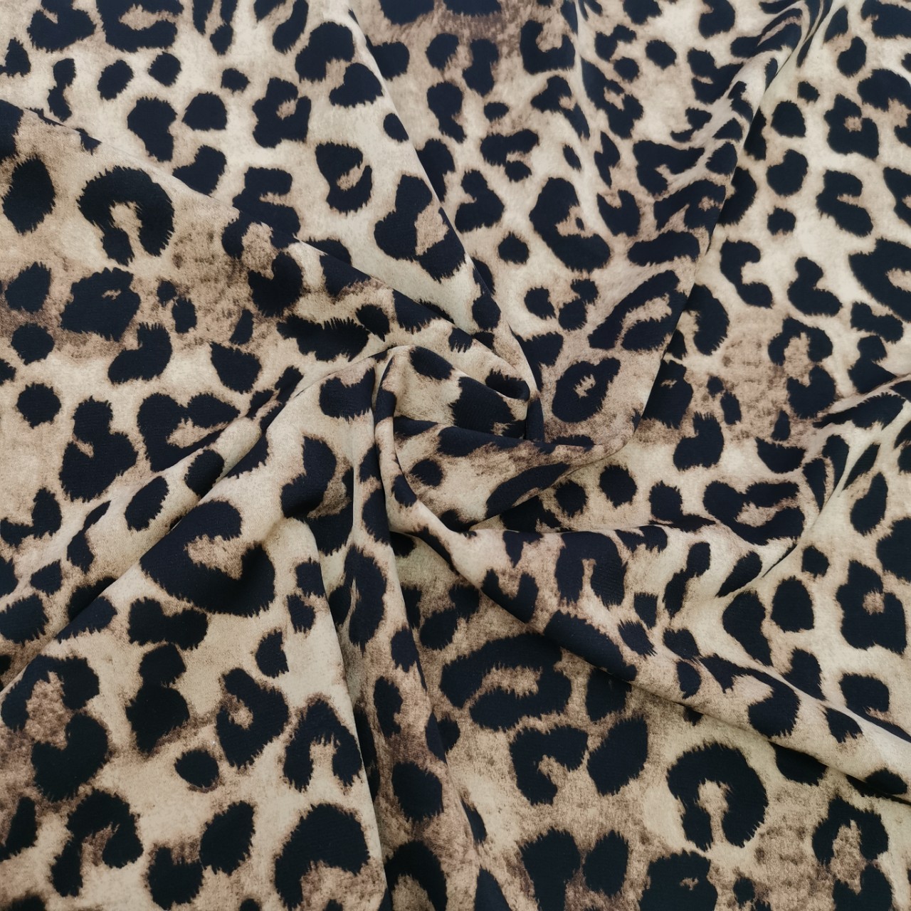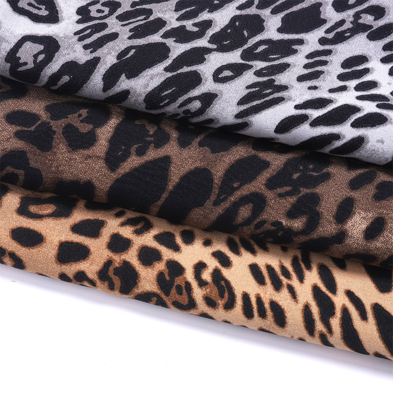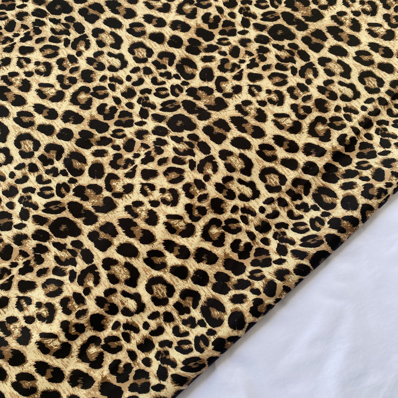 メーカーの新作ヒョウ柄ポリエステル生地、柔らかいアニマルプリント生地、卸売ワンピース、パンツ、衣料品生地