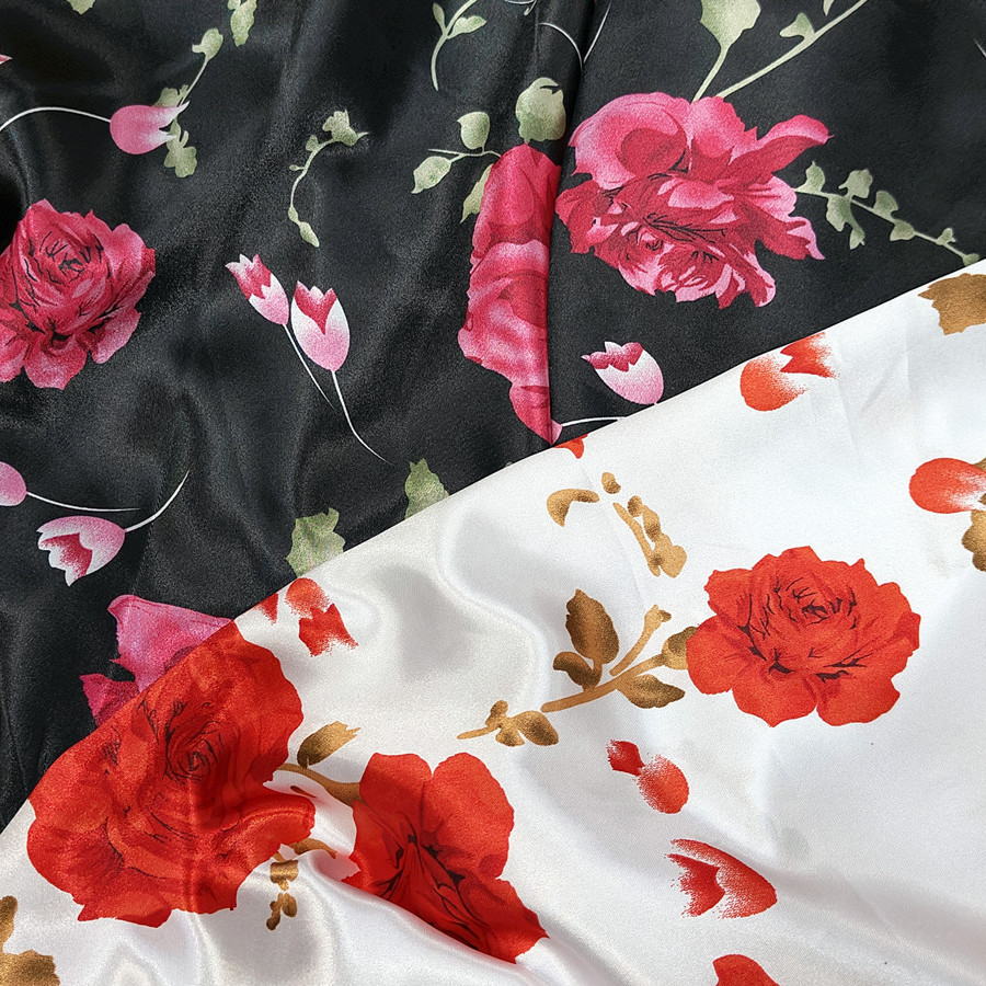 大きい花のプリントの色の丁の布はシルクの絹織物の生地の服装のパジャマの内張りの布団カバーのシャワーの帽子のリボンの生地を模倣します。