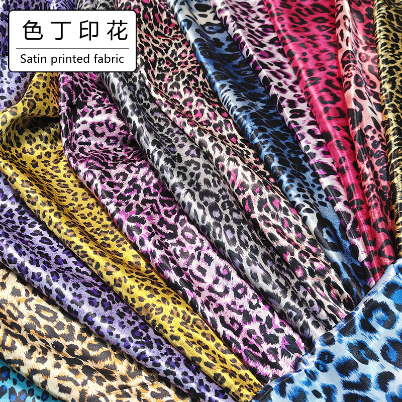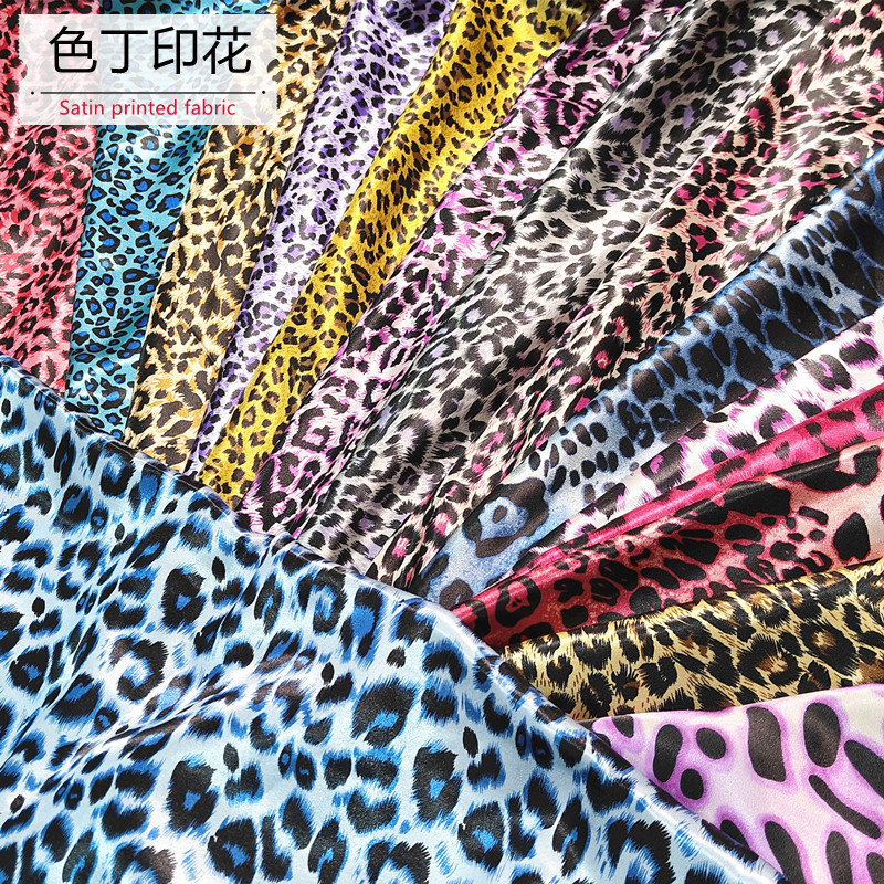 现货弹力色丁印花面料 豹纹印花布 服装里布丝巾娃娃手工衣布料