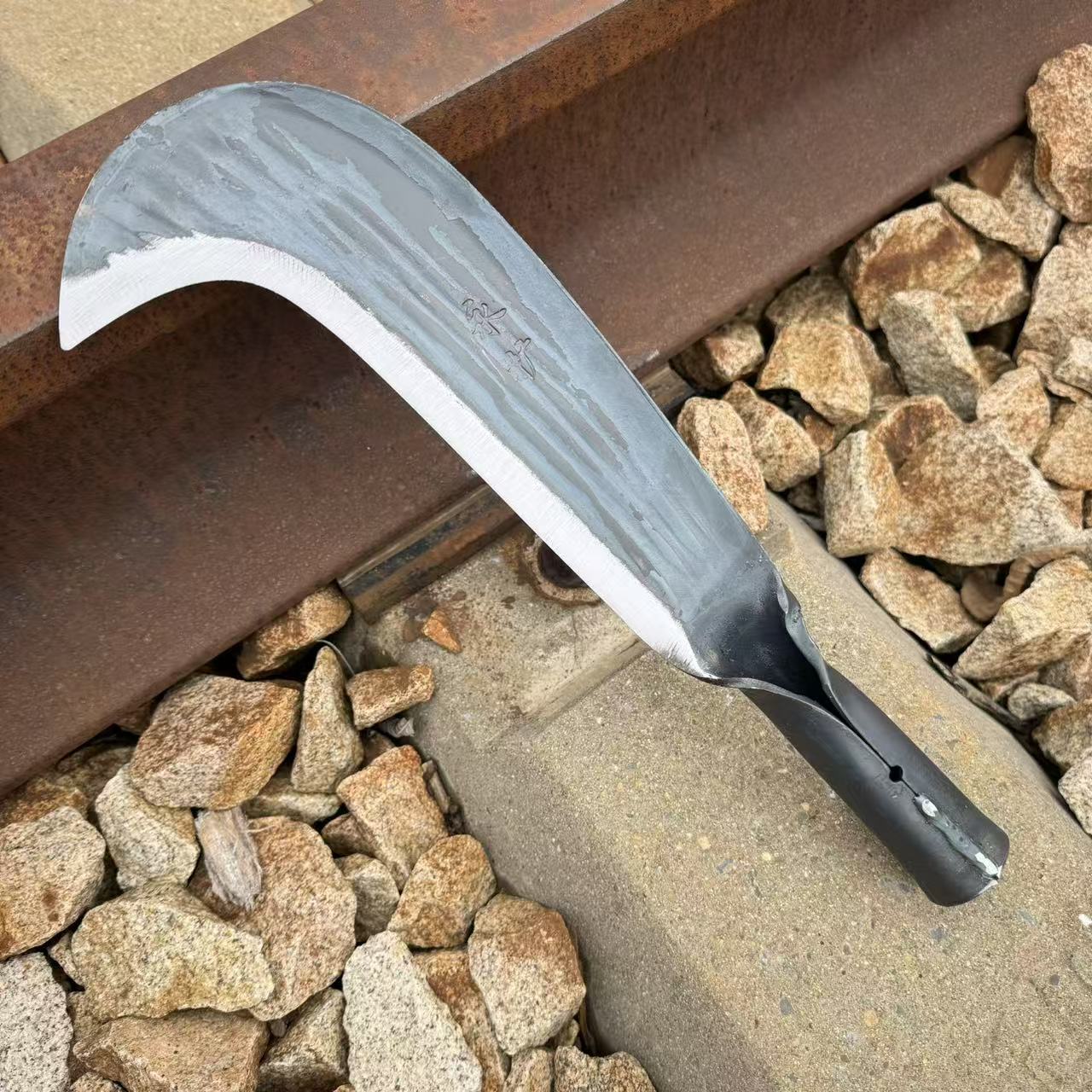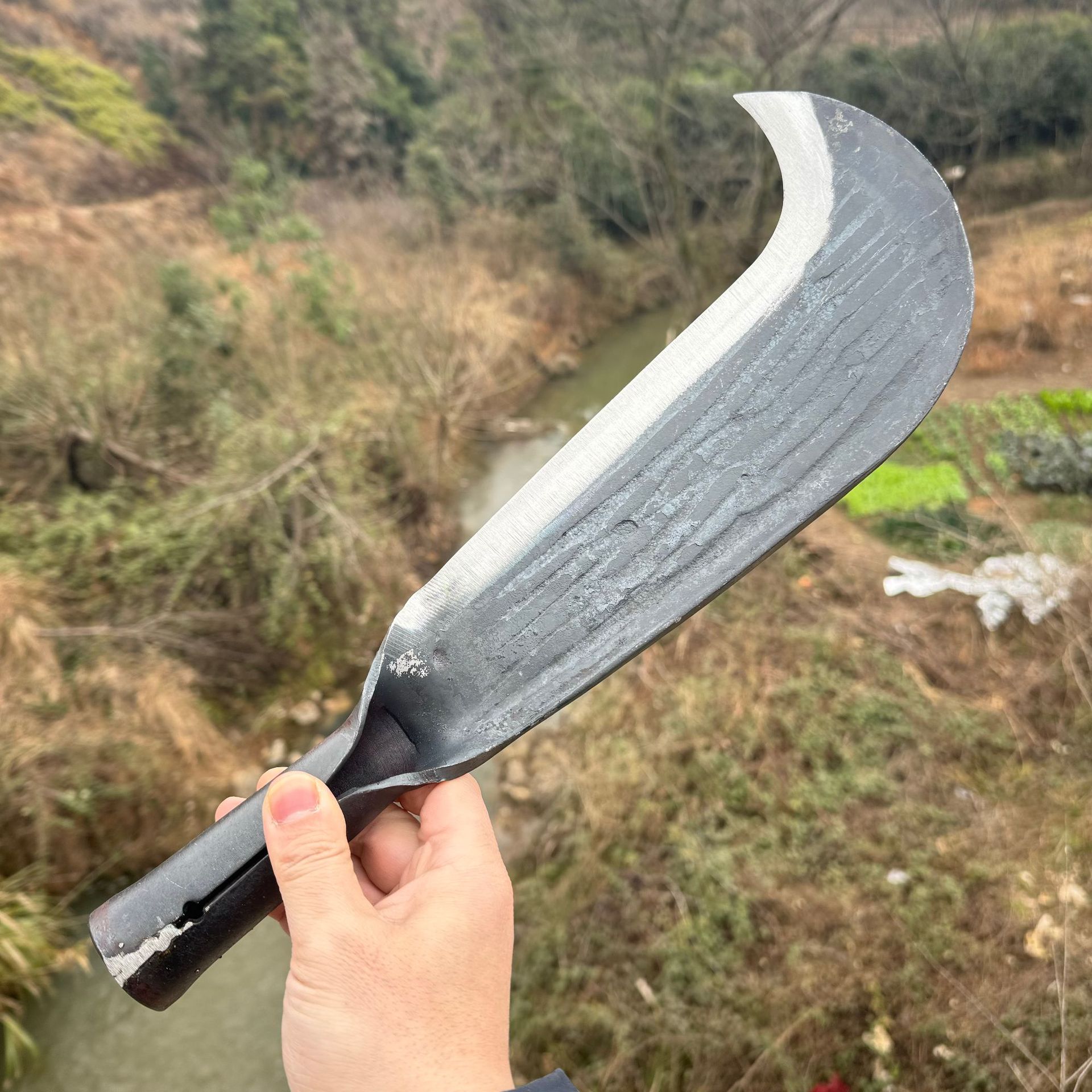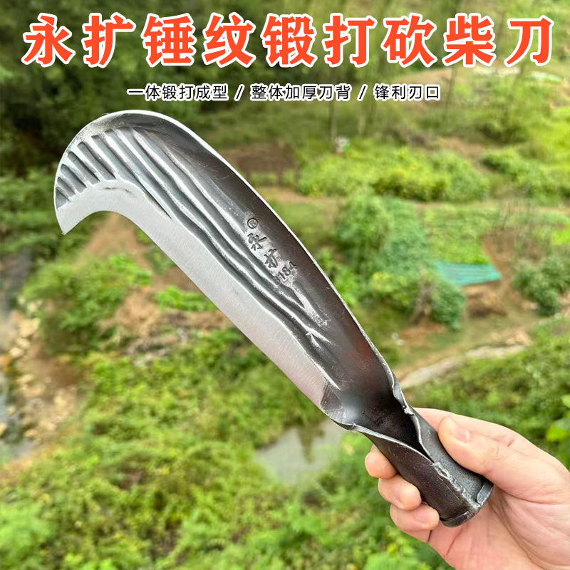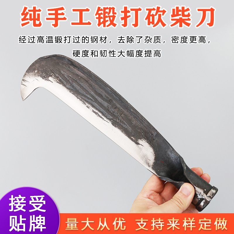 手工锻打砍柴刀镰刀农用刀具劈柴砍树开山刀锰钢锻打勾刀砍割两用