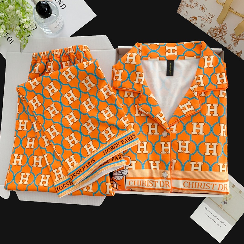 德绒秋冬新款胸垫爱玛橙加厚保暖睡衣女韩版长袖长裤家居服两件套