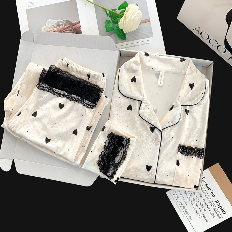 秋冬新款实体高货订单爱心蕾丝金丝绒睡衣女套装直播代发家居服