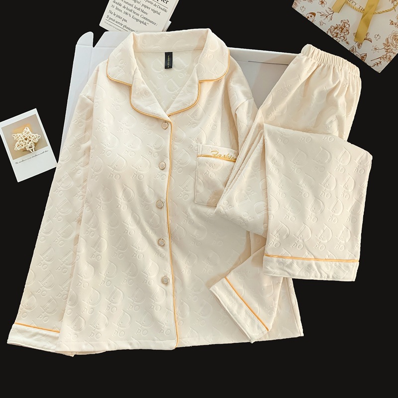 2024文字の軽い贅沢な小さな香りのベルベットのパジャマ女性秋冬の長袖の金ドリルのベルベットの家の服のスーツは生放送します
