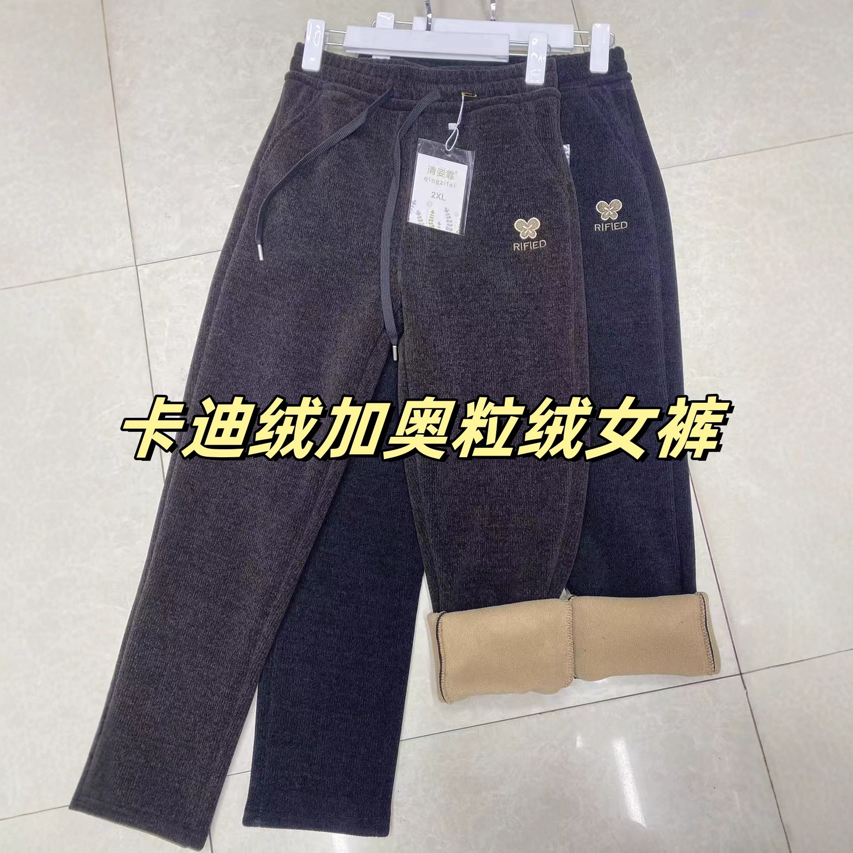 米粒金雕加绒加厚小脚裤子女秋冬2025新款中老年洋气妈妈直筒哈伦