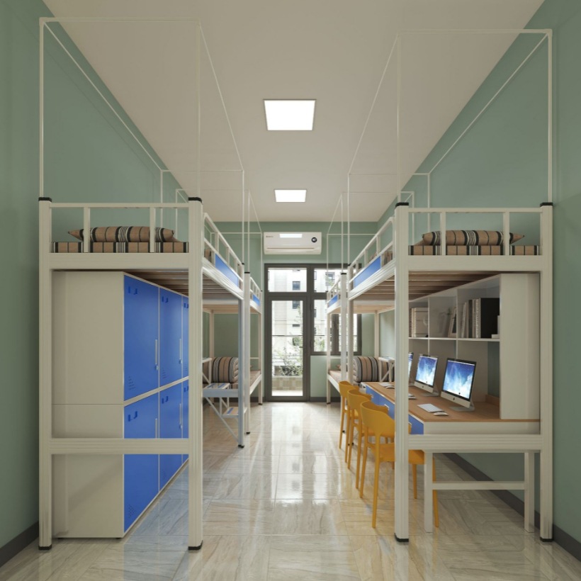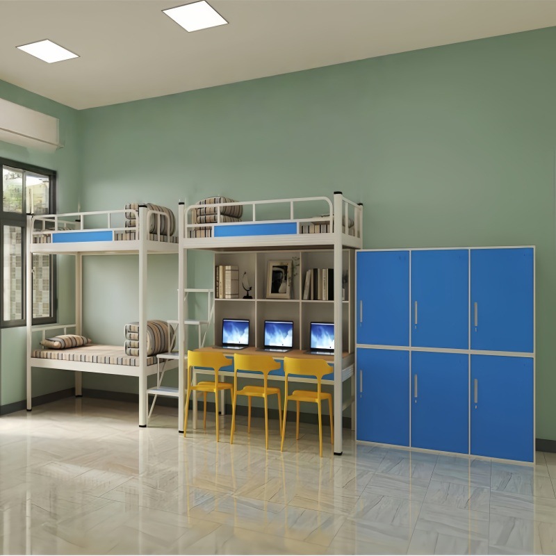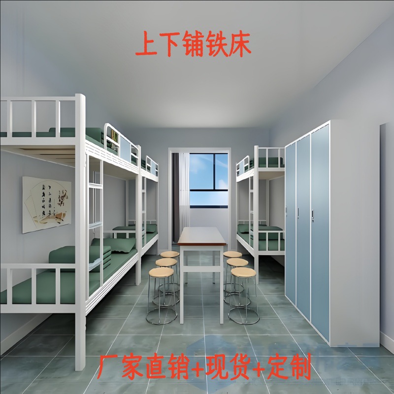 上下に鉄製のベッドを敷いて、寮の上下のベッドをカスタマイズします。