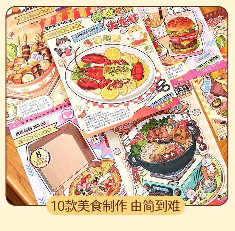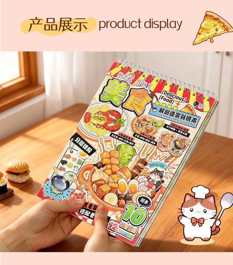 美食闯关游戏贴纸本创意造景贴纸书儿童立体贴画解压手工安静书