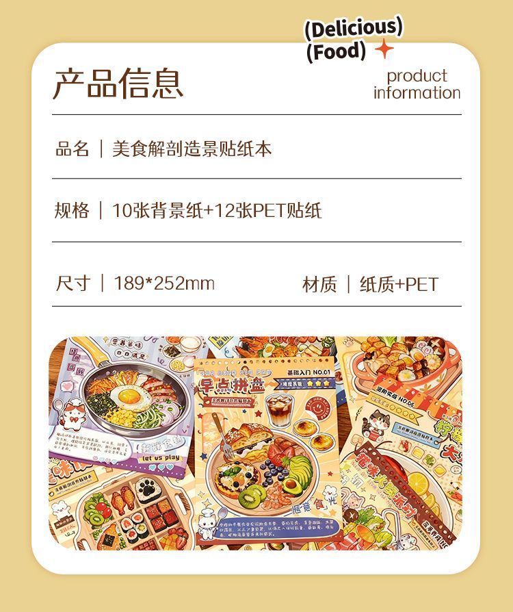 美食解剖素材贴纸本 ins美食日常手帐贴DIY装饰切模贴纸本治愈手