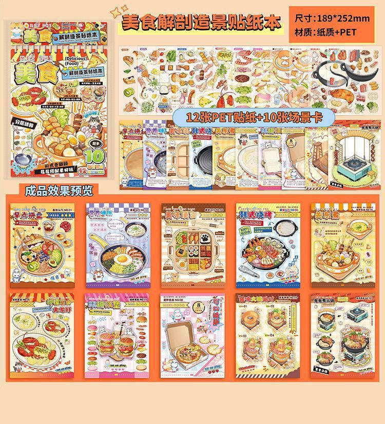 颜色 美食解剖,火锅解剖(猫咪),火锅解剖(兔兔),种植手册微缩造景贴纸本,美食地图解剖造景贴纸本
