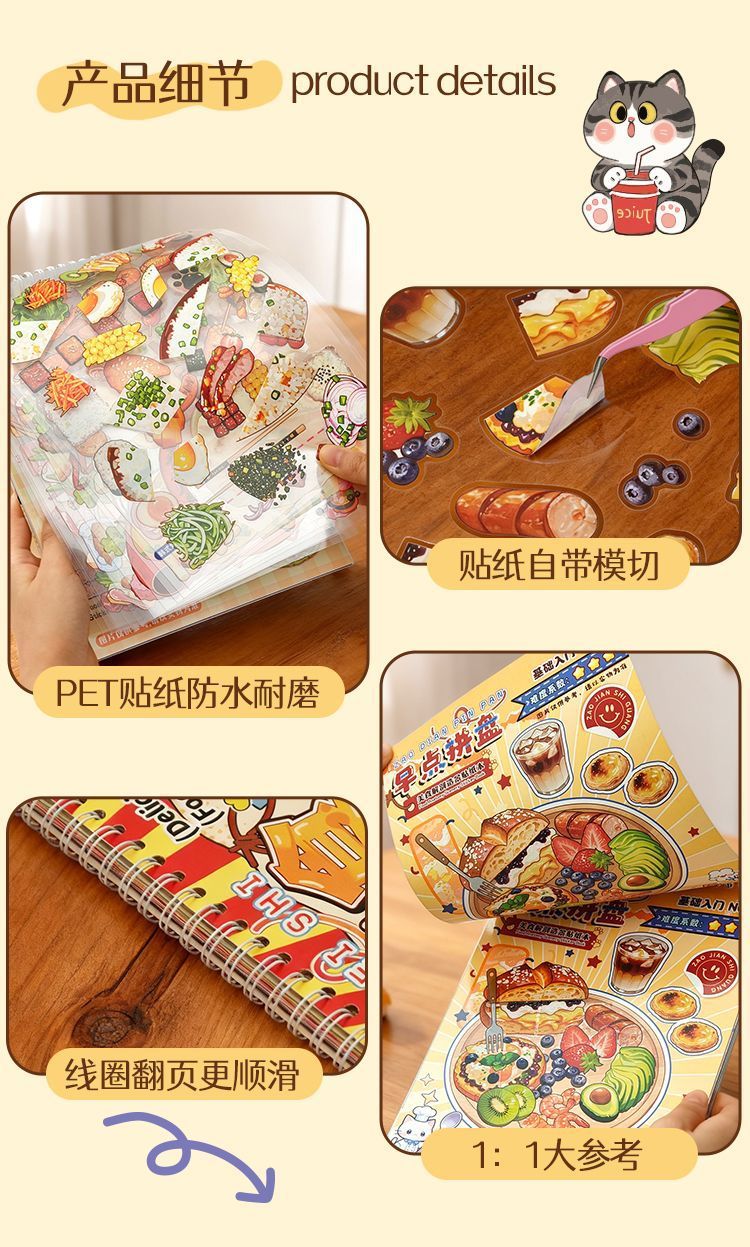 日系美食贴纸本巨厚分装缤纷美食古早模切贴纸书漫画手账贴纸diy