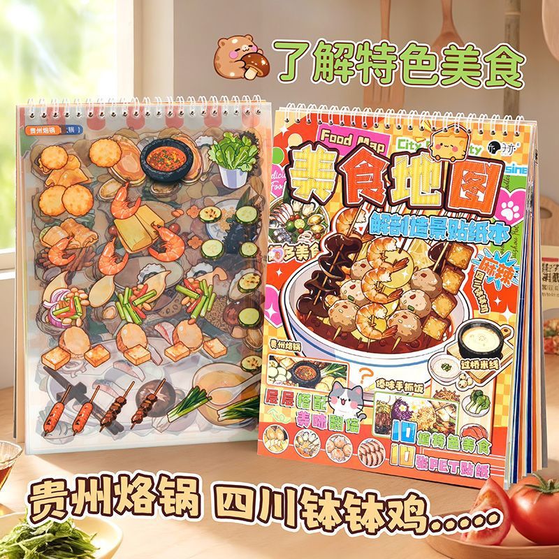 美食地图解剖贴纸本治愈城市地域风情美食diy趣味益智贴画贴纸本