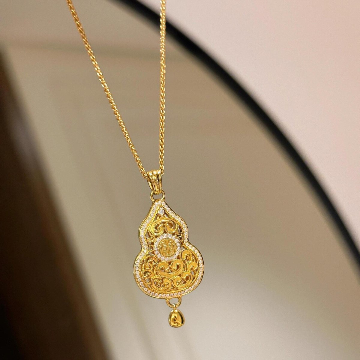 新中式如意祥云镂空葫芦项链女vintage古法传承吊坠小众设计颈链