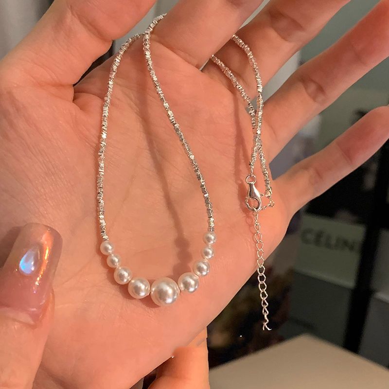 フランスの軽くて豪華な銀の真珠のネックレスの女性のvingateの豪華な高級感の首の鎖の森は鎖の骨の鎖を組み合わせます。