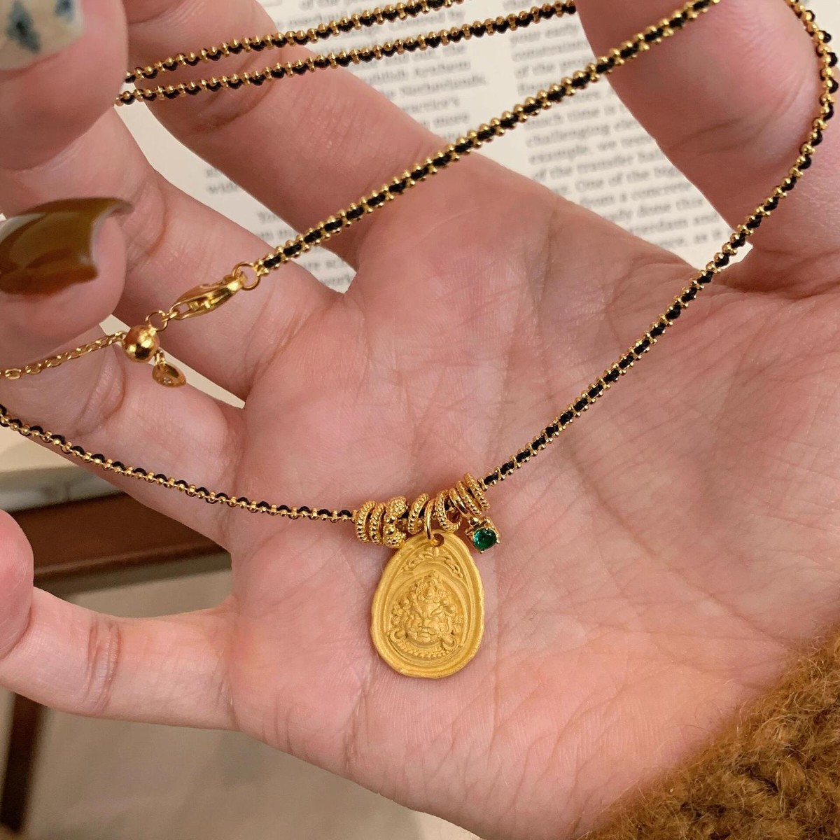 新中国式古法黄財神ペンダントネックレス女性ins軽贅沢高級感セーターチェーン個性百合鎖骨チェーン