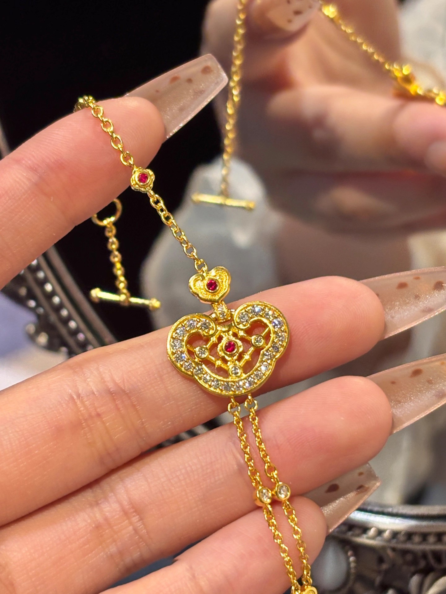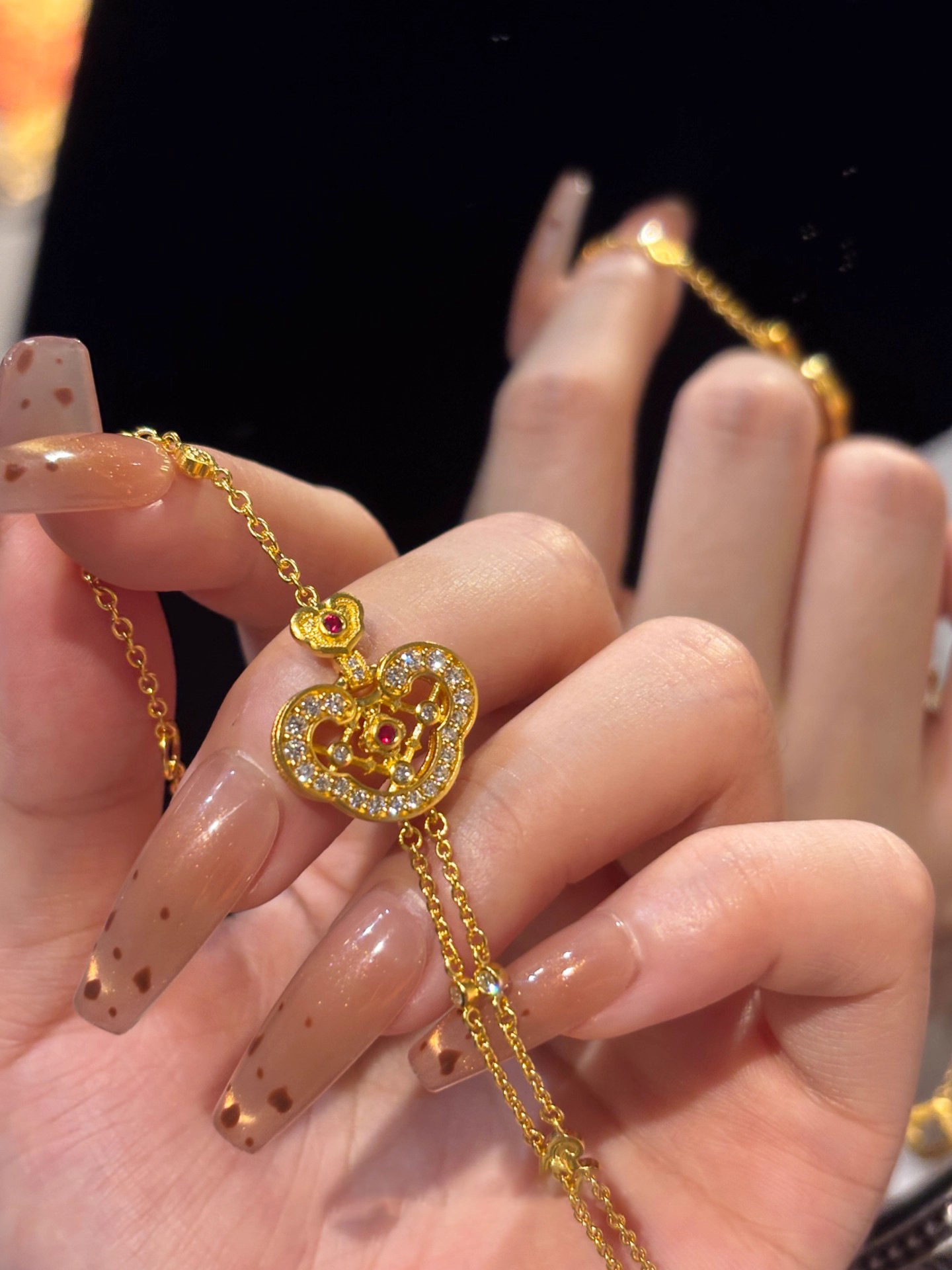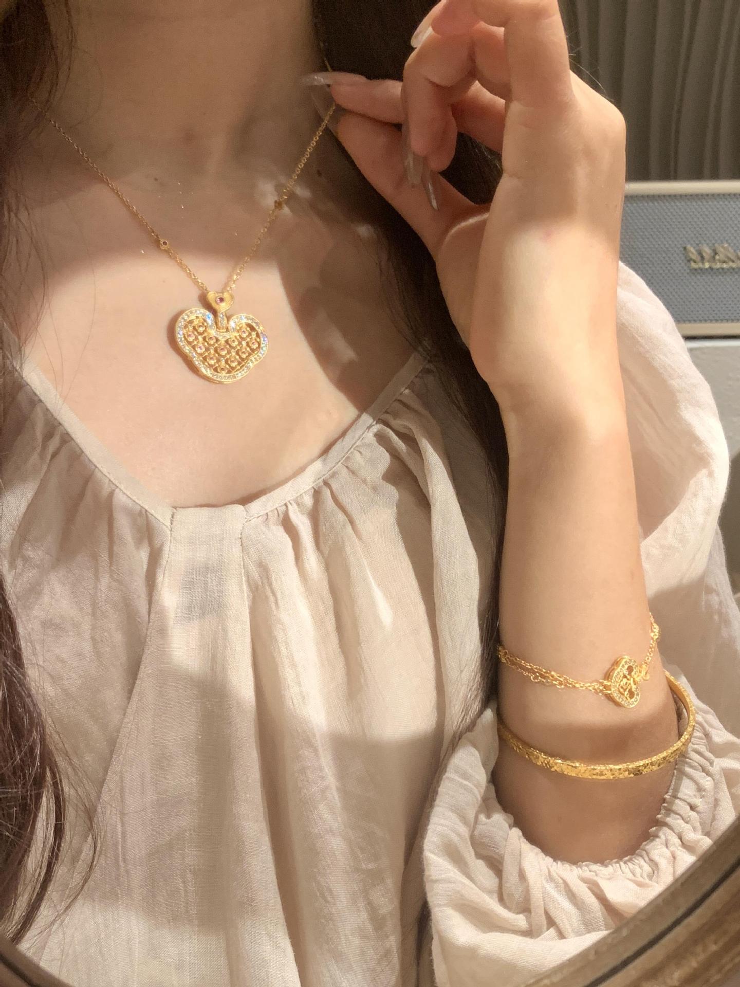 颜色 花丝镂空如意锁包项链,花丝镂空如意锁包手链