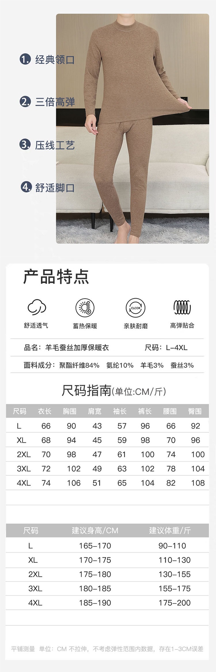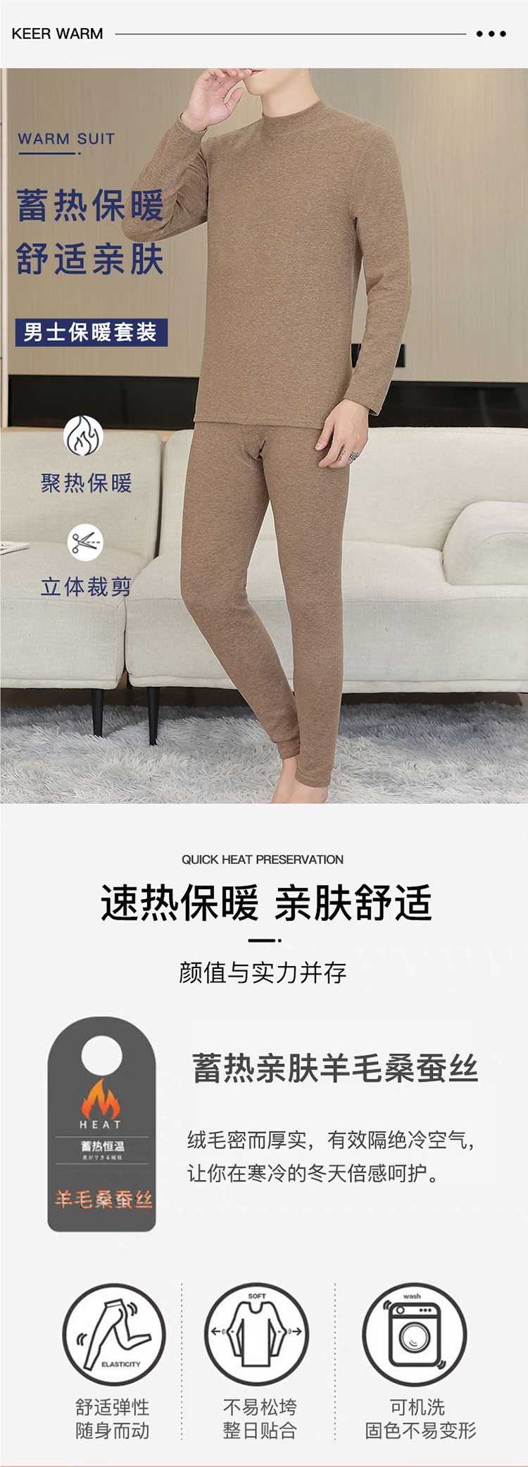 2024新型ビジネス徳絨秋衣秋ズボン加毛保温下着男性スーツ