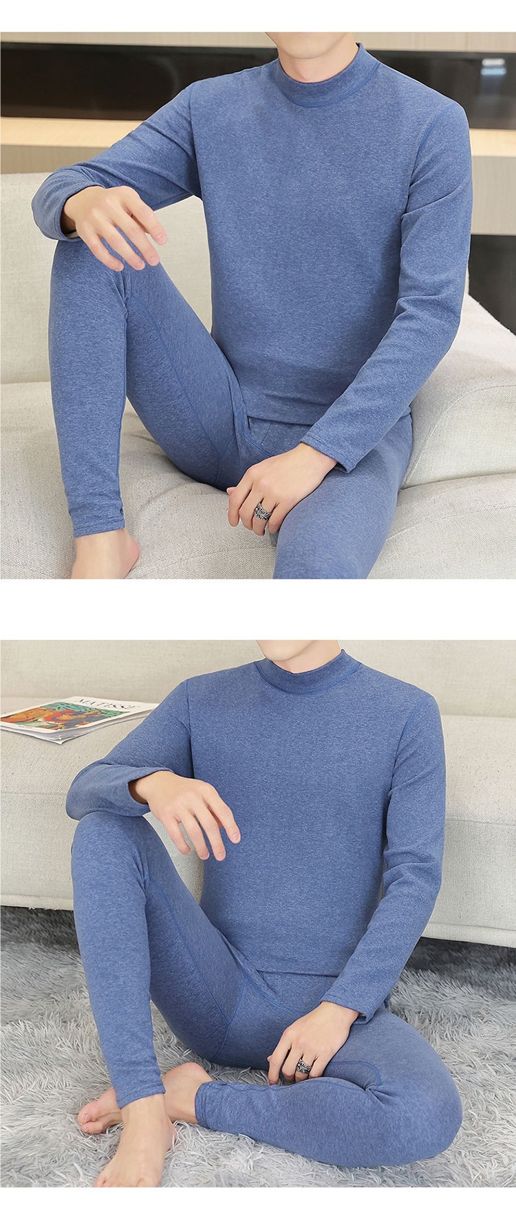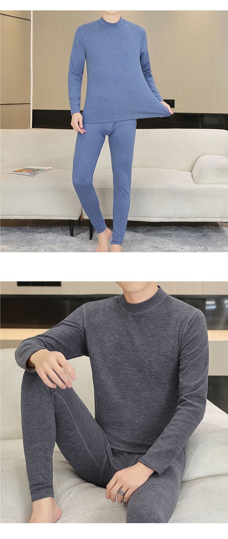 徳パイル保温下着男性半高襟無痕厚さ秋衣秋ズボン青年発熱徳容打底スーツ男