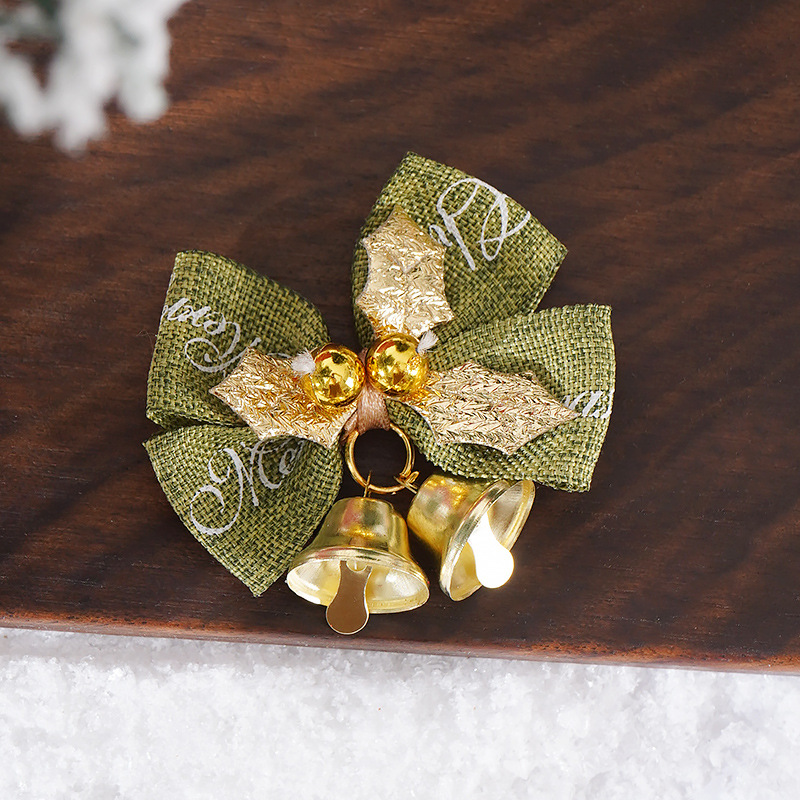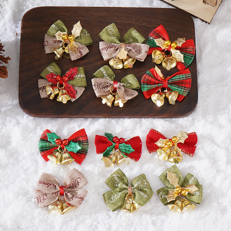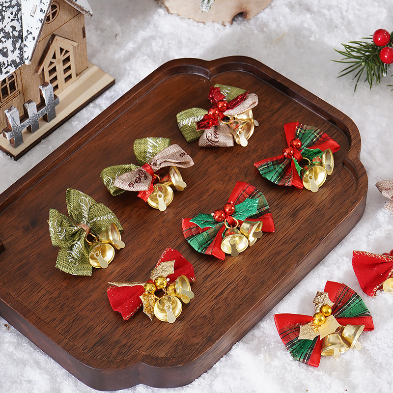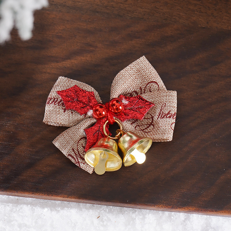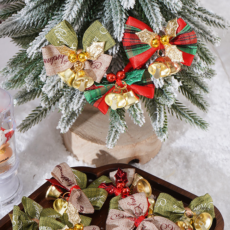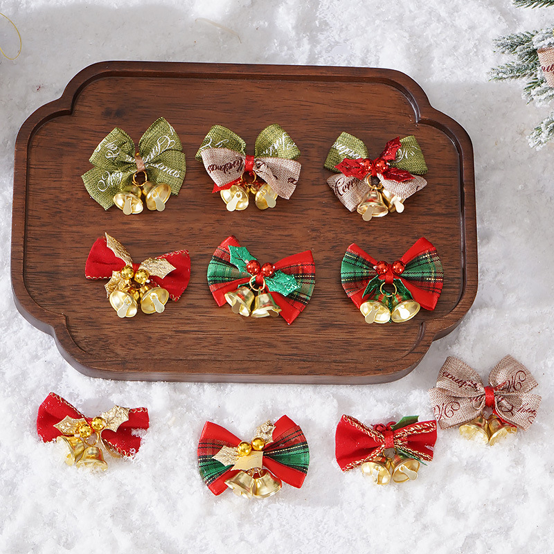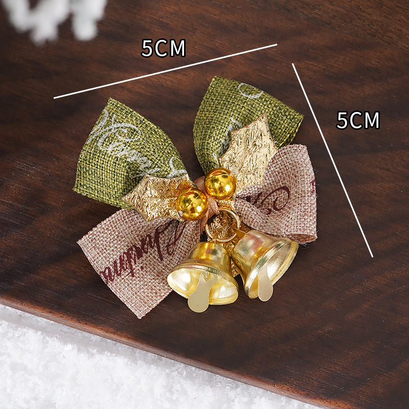 新款圣诞蝴蝶结DIY迷你麻布铃铛蝴蝶结 圣诞花环装饰蝴蝶结挂件