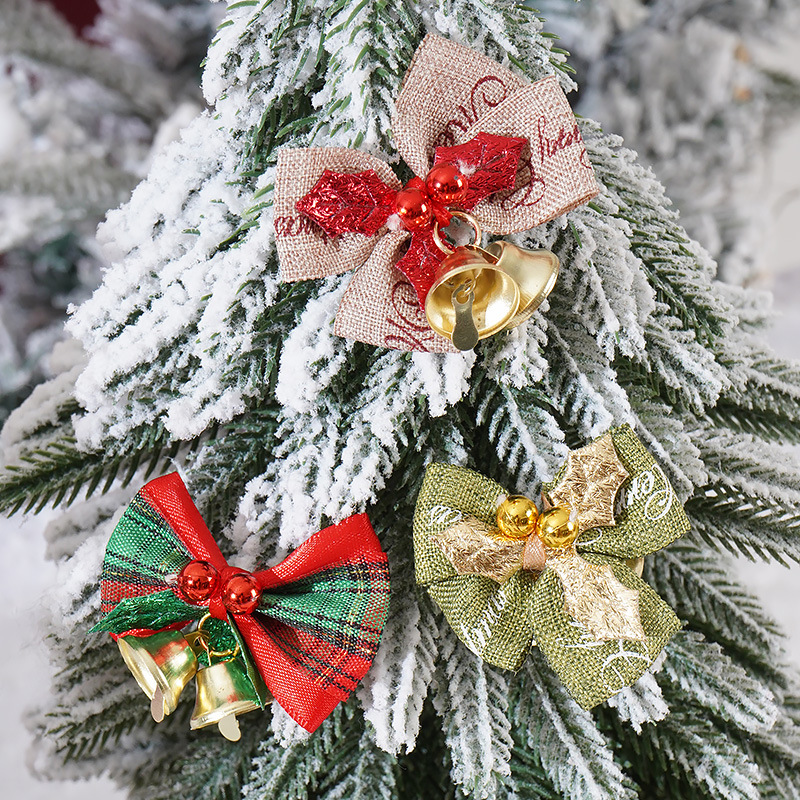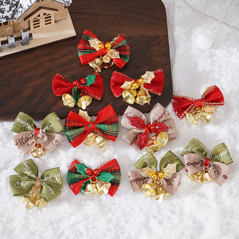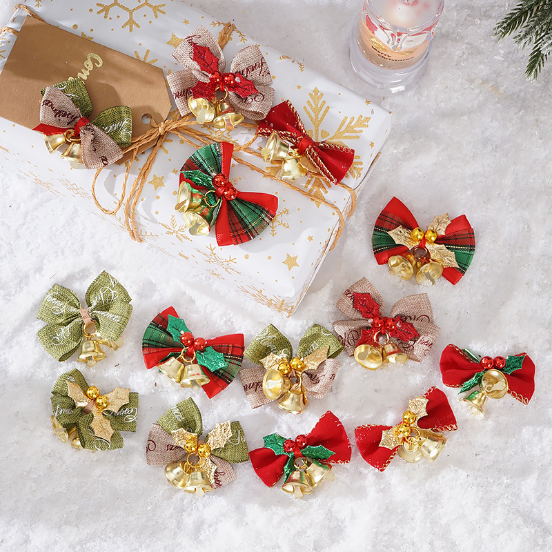 跨境圣诞装饰蝴蝶结diy配饰麻布蝴蝶结铃铛圣诞树挂件礼品盒包装