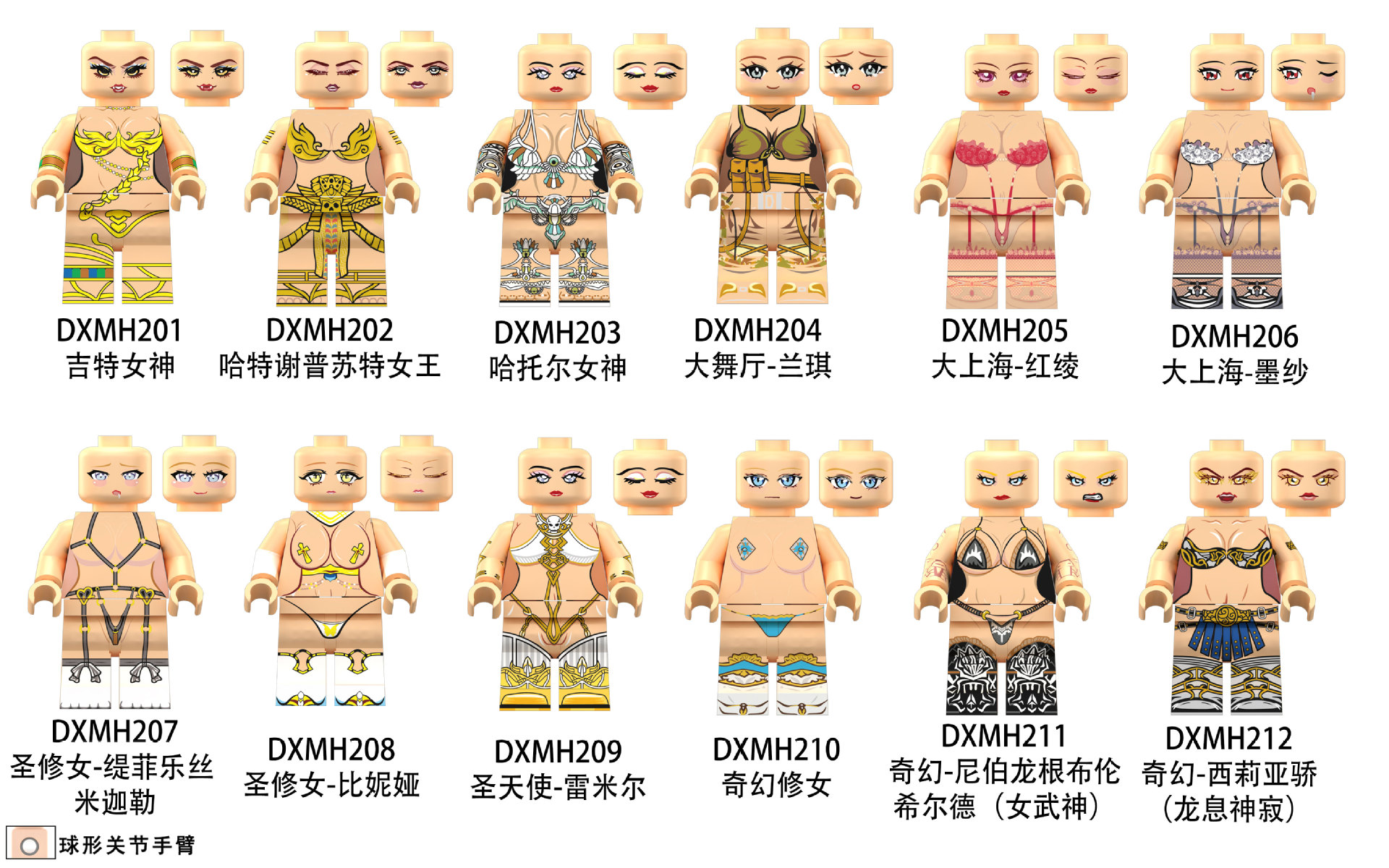 颜色 DXMH207圣修女-缇菲乐丝米迦勒,DXMH211女武神,DXMH210奇幻修女,DXMH209圣天使-雷米尔,DXMH208圣修女-比妮娅,DXMH206大上海-墨纱,DXMH205大上海-红绫,DXMH204大舞厅-兰琪,DXMH201吉特女神,DXMH202哈特谢普苏特女王,DXMH203哈托儿女神,DXMH212西莉亚骄(龙息神寂)