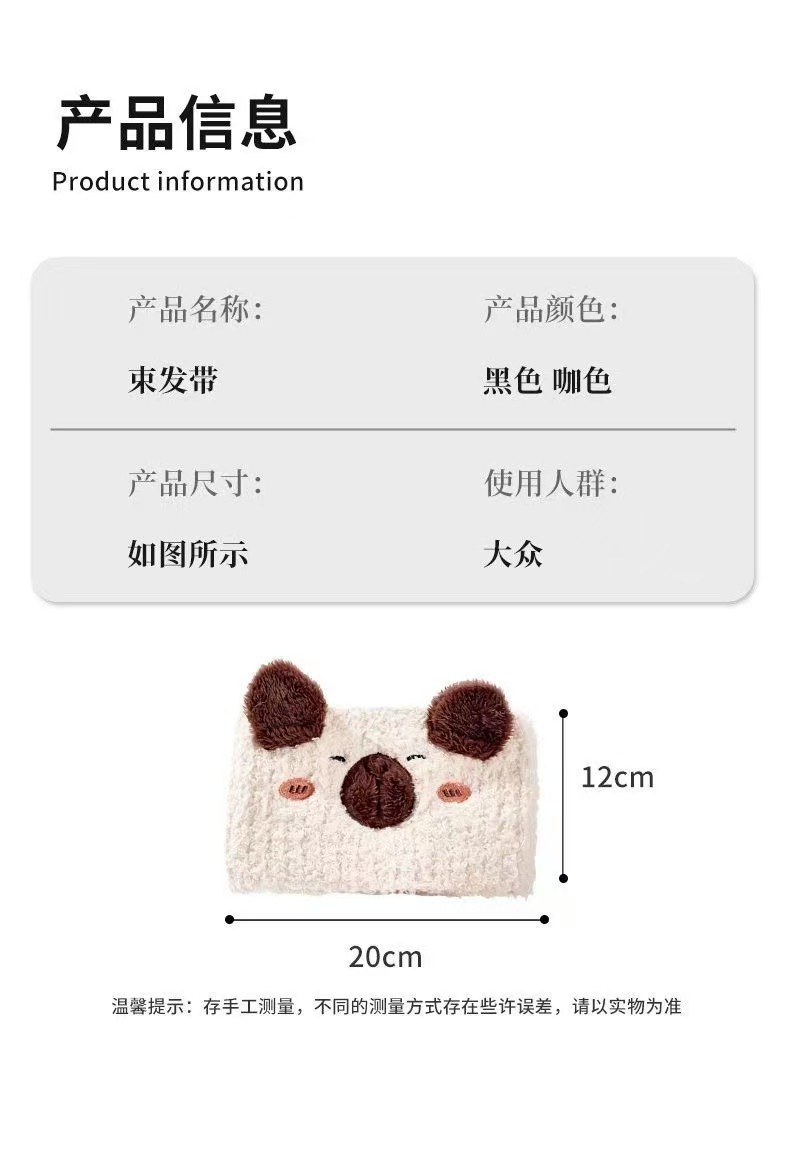 珊瑚绒发带月子发带可爱熊猫防风头带针织发箍保暖吸汗洗脸发带束