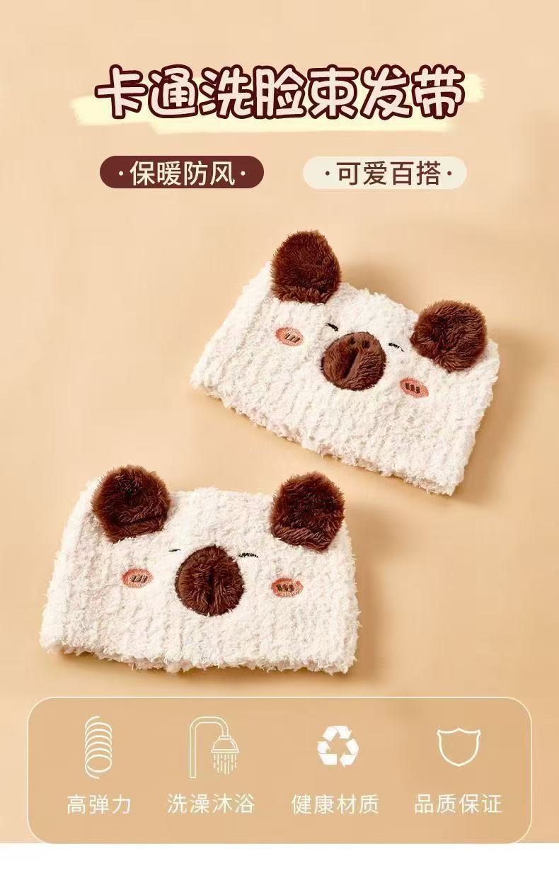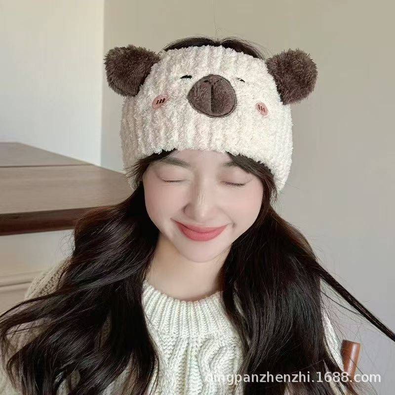 可爱卡皮巴拉束发带毛绒护额头巾加厚洗脸宽发带冬季外出保暖帽子