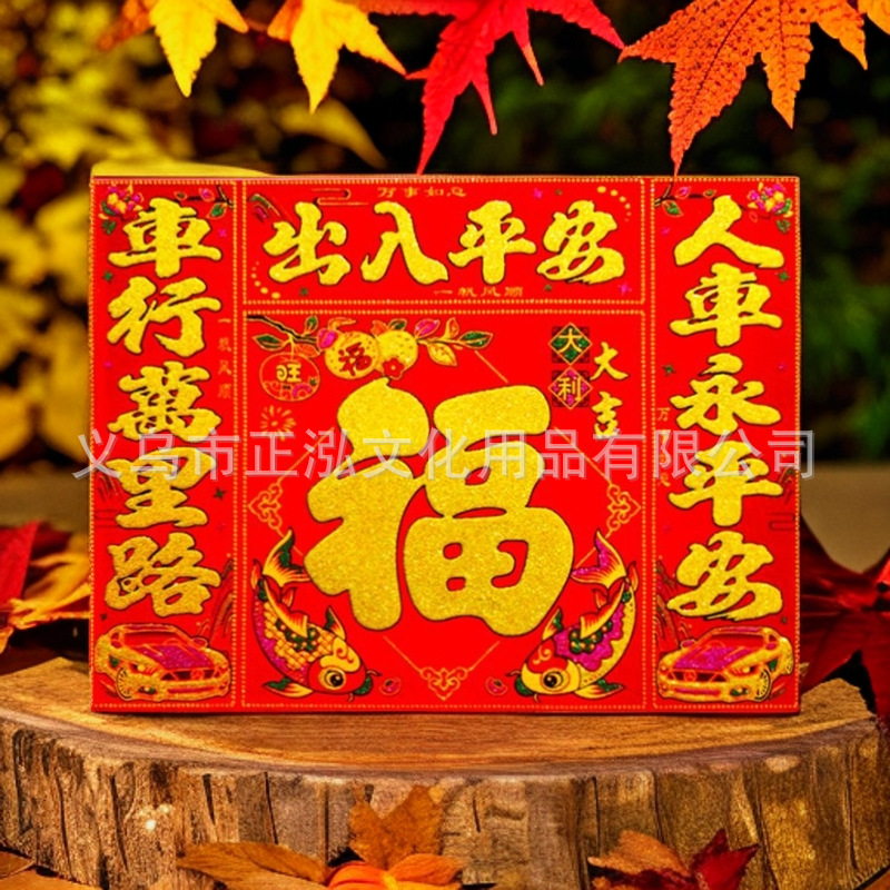 2026年馬年立体植毛干支門飾り漫画風ペアステッカー新年飾り対聯福文字年画窓飾り卸売
