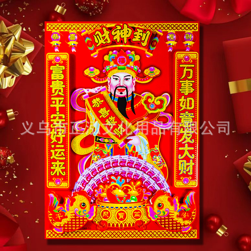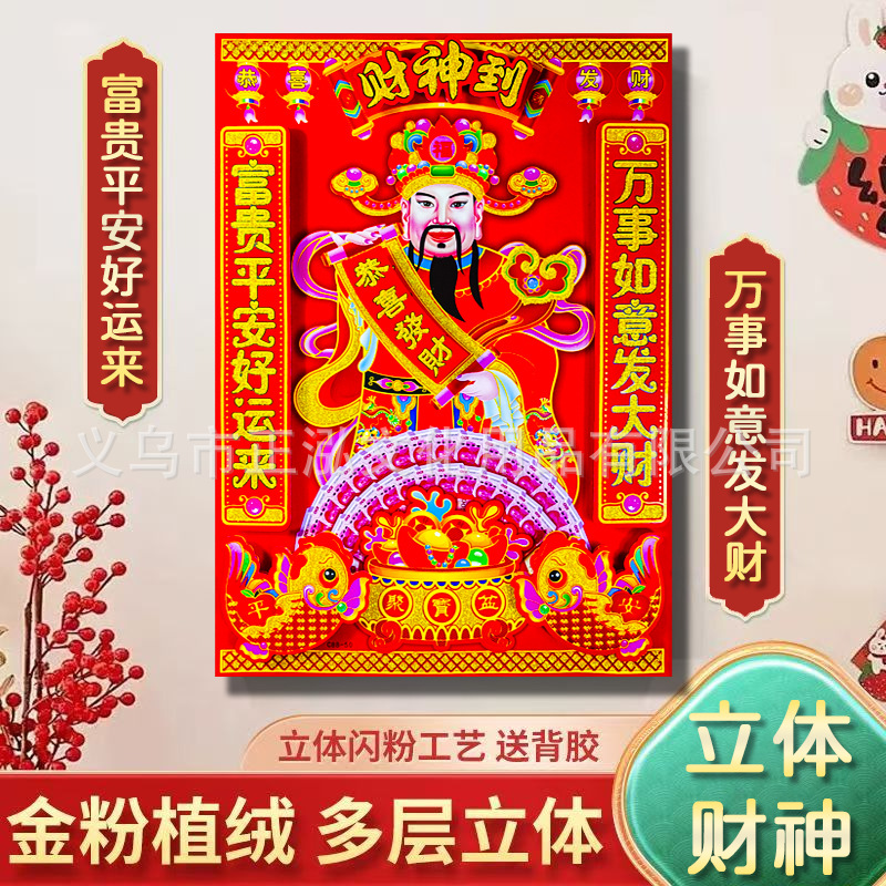 新年財神ステッカー飾り2026年馬年福文字立体財神掛け絵新年春節年画対聯