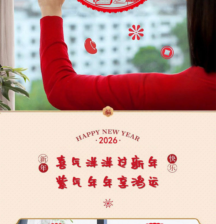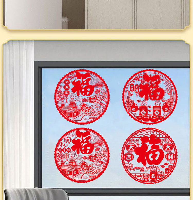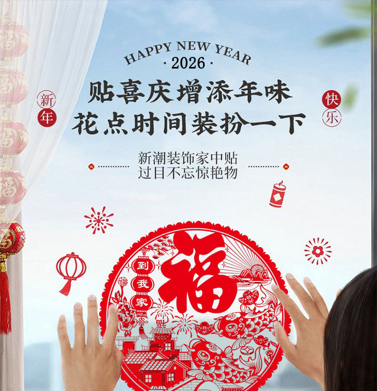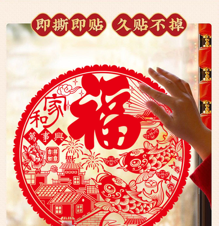 红色窗花门贴2026马年春节福字贴装饰新年福字大吉玻璃贴静电贴