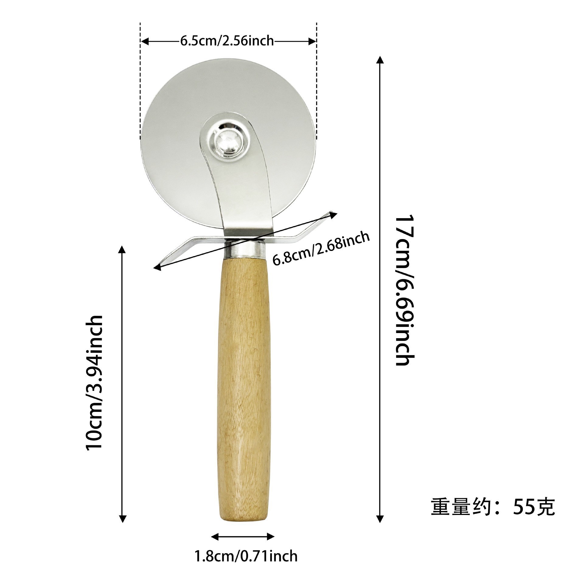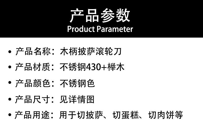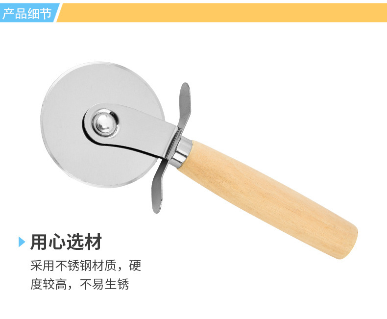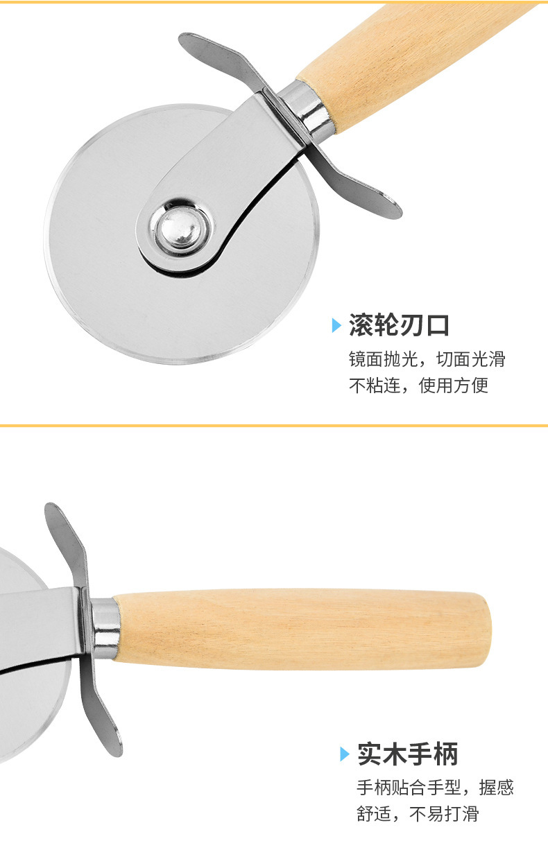 不锈钢披萨轮刀木柄起酥匹萨刀介饼刀滚刀单滚轮披萨饼烘焙切割刀