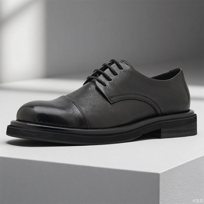 2025秋季商务男鞋英伦简约黑色厚底德比鞋时尚圆头休闲皮鞋男