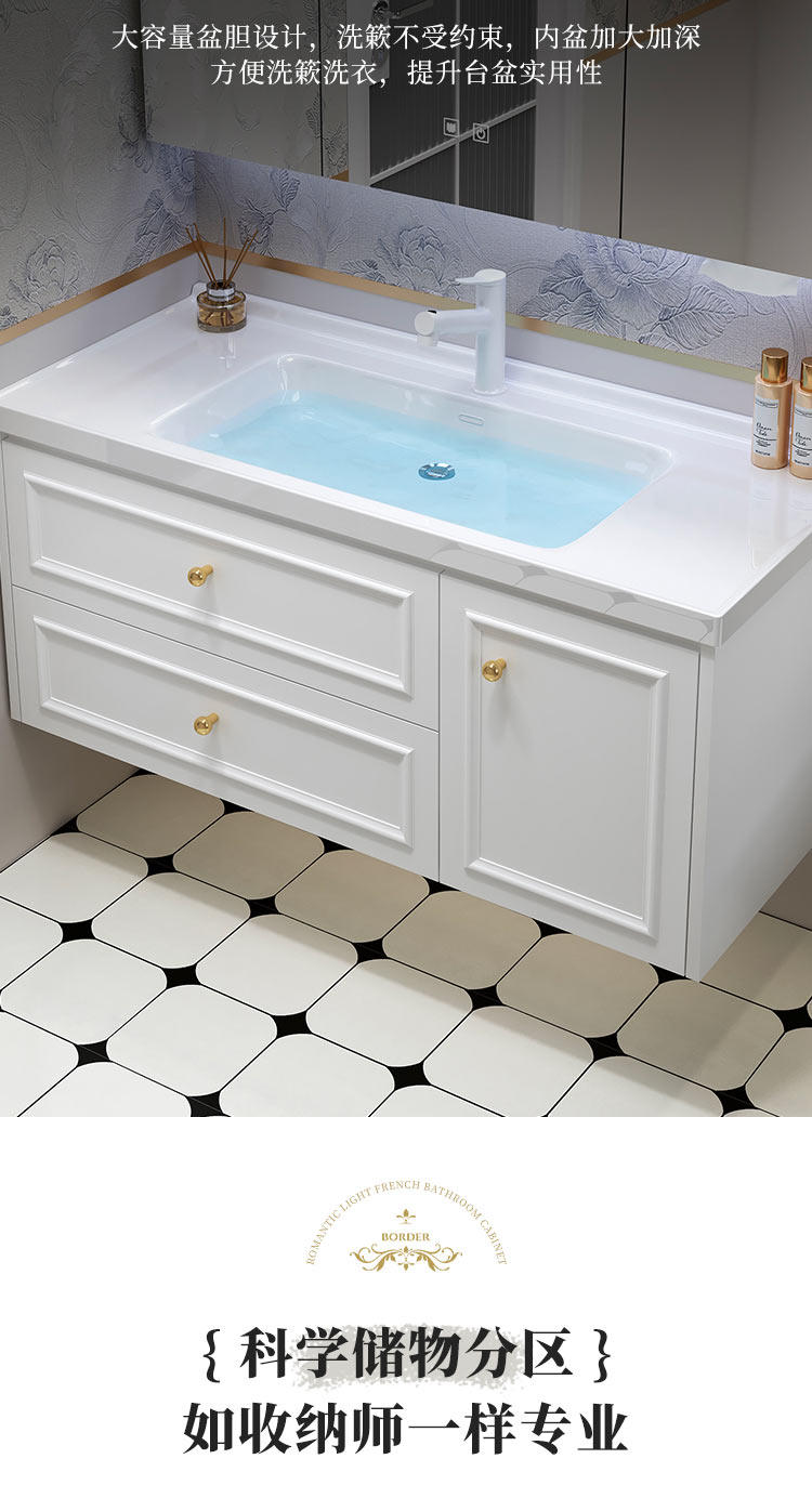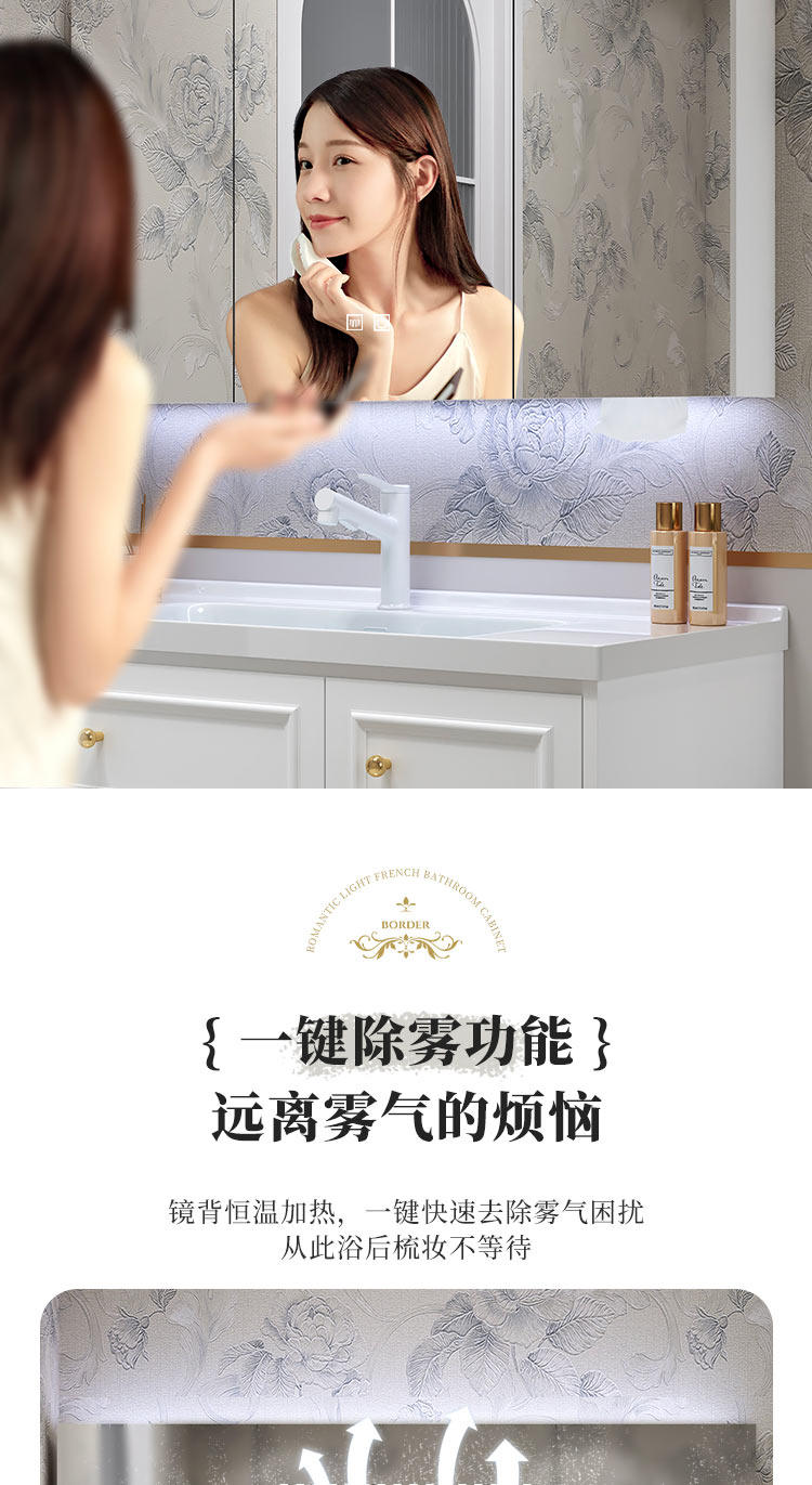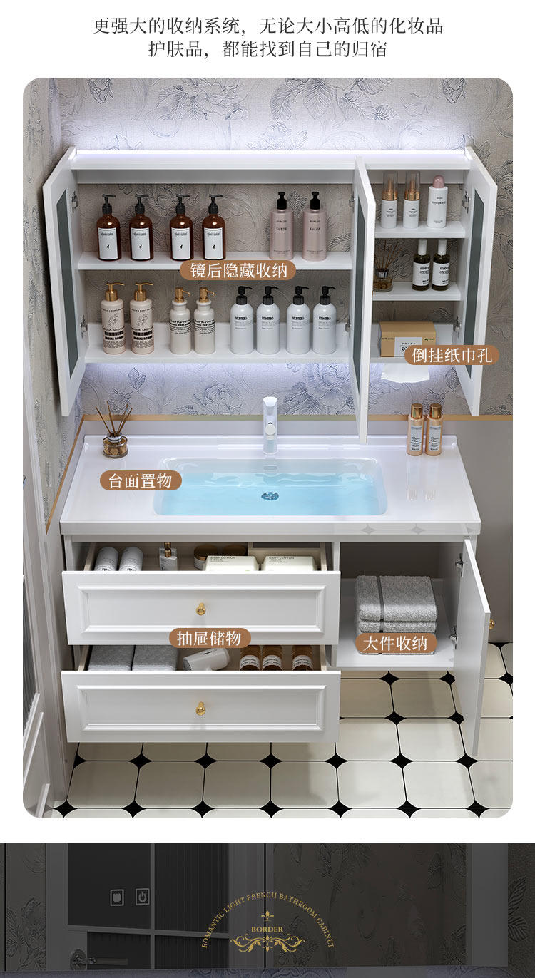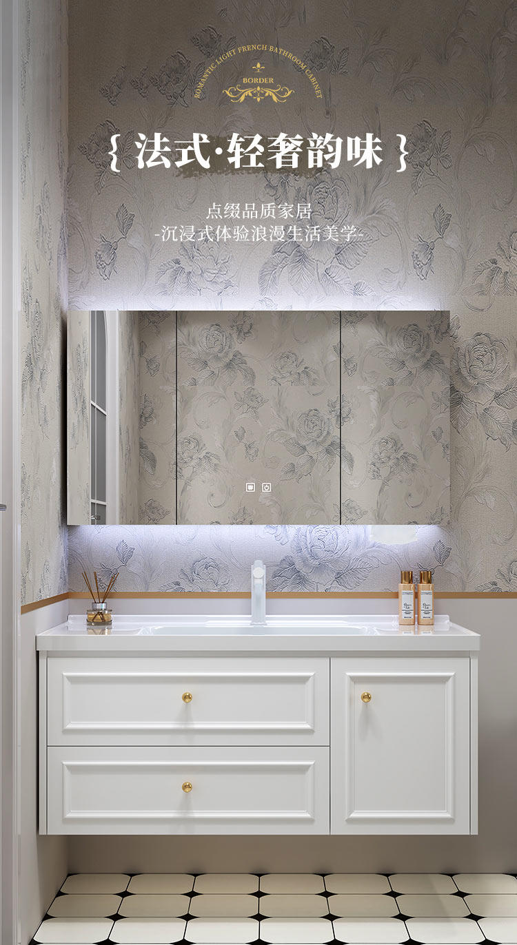 智能法式奶油风浴室复古卫浴洗漱台卫生间洗脸洗手台盆组合