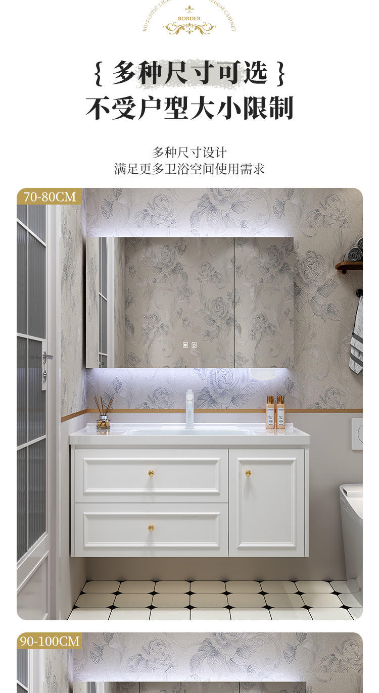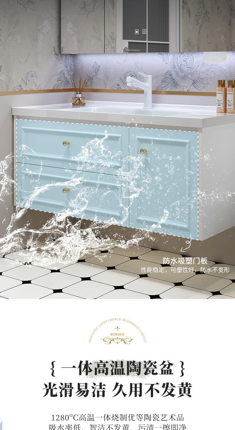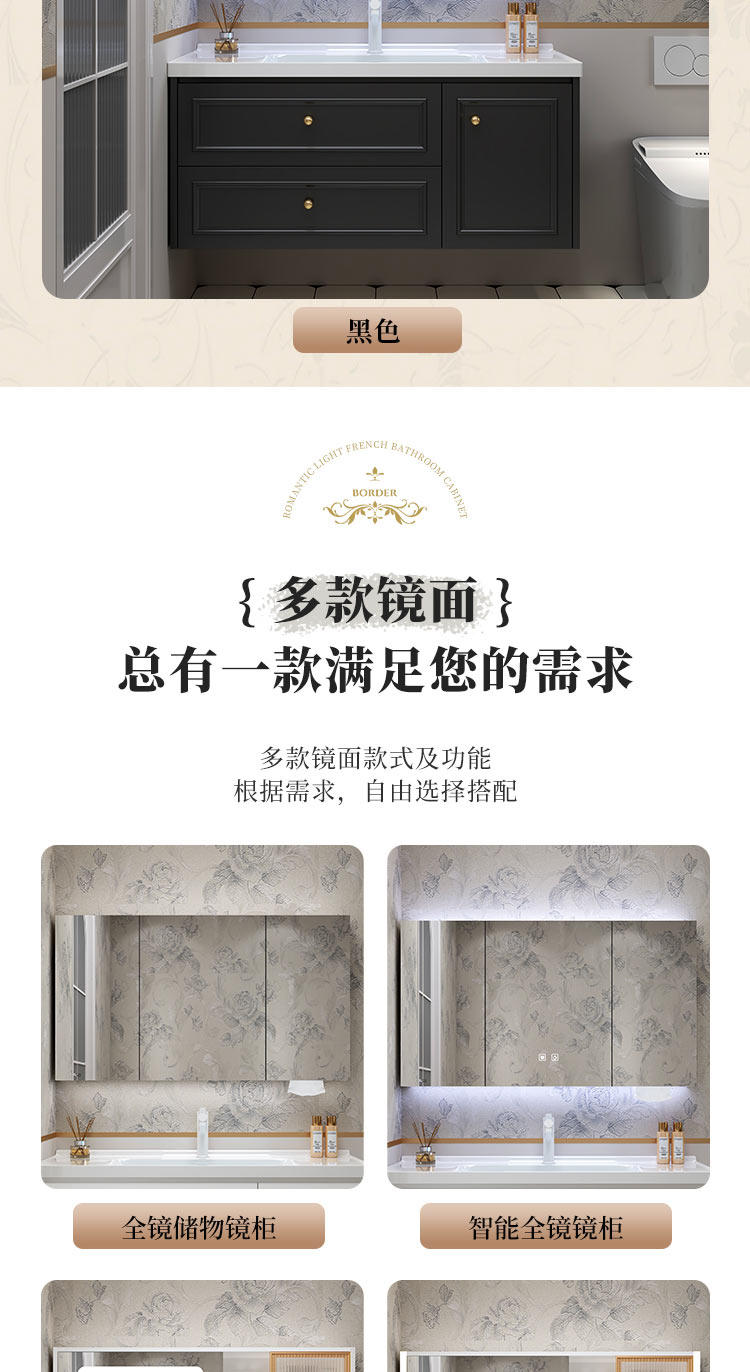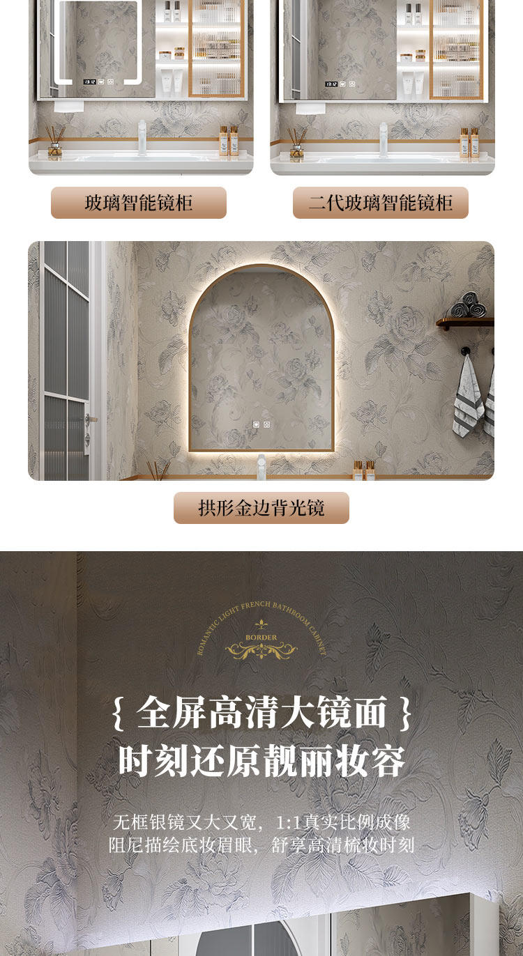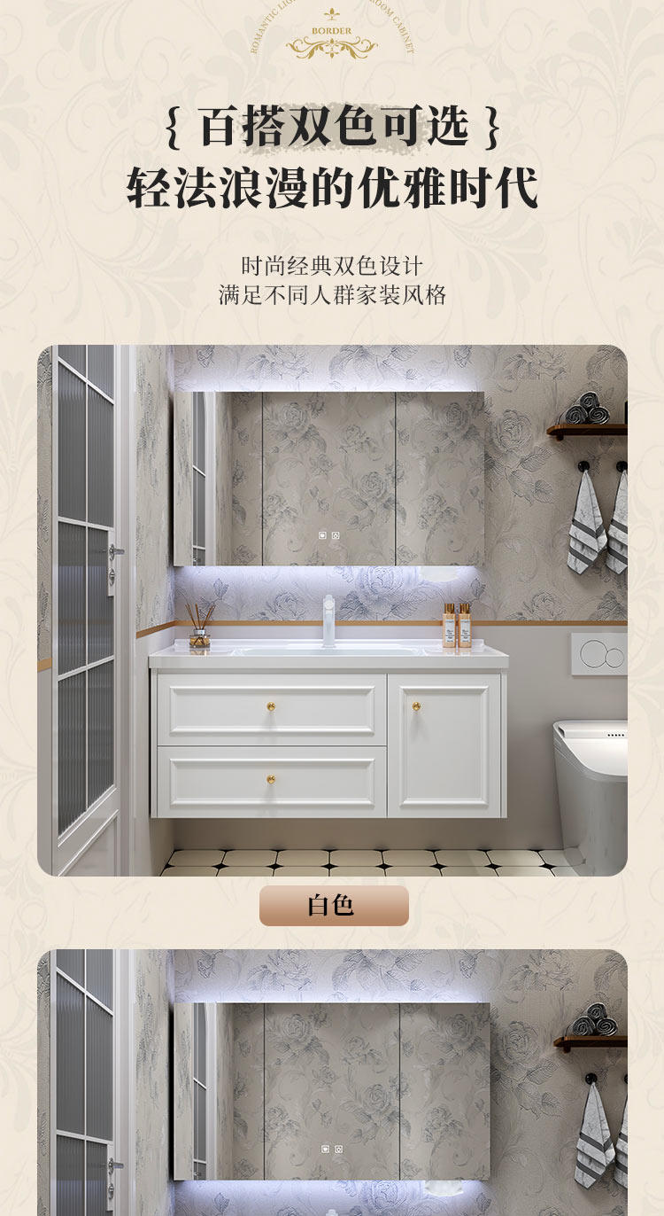 智能法式奶油风浴室复古卫浴洗漱台卫生间洗脸洗手台盆组合