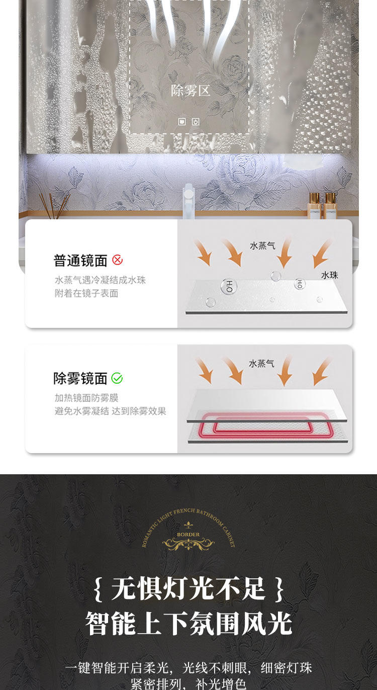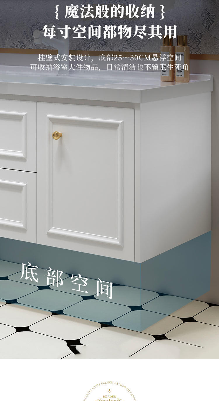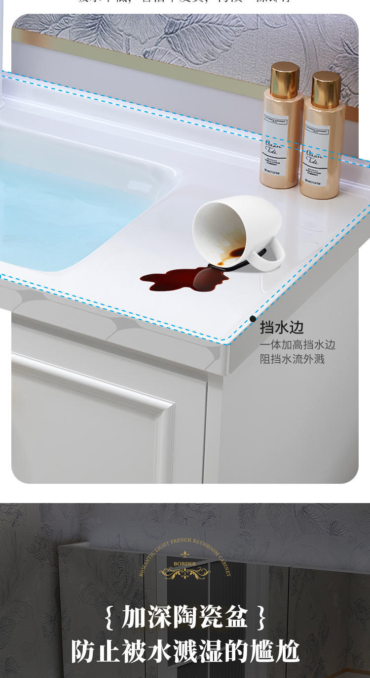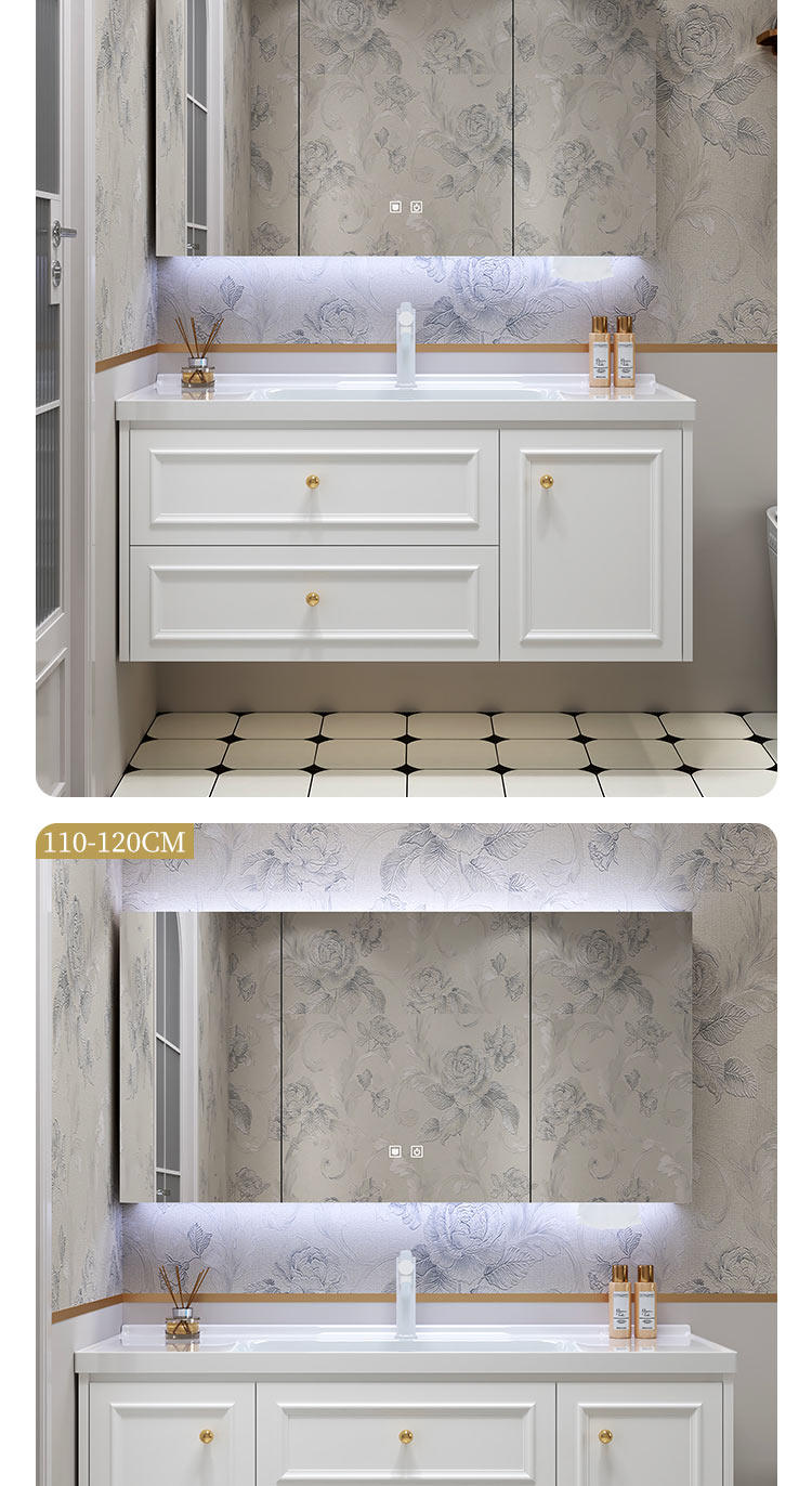 智能法式奶油风浴室复古卫浴洗漱台卫生间洗脸洗手台盆组合