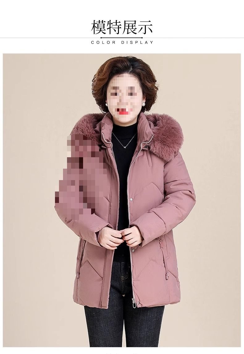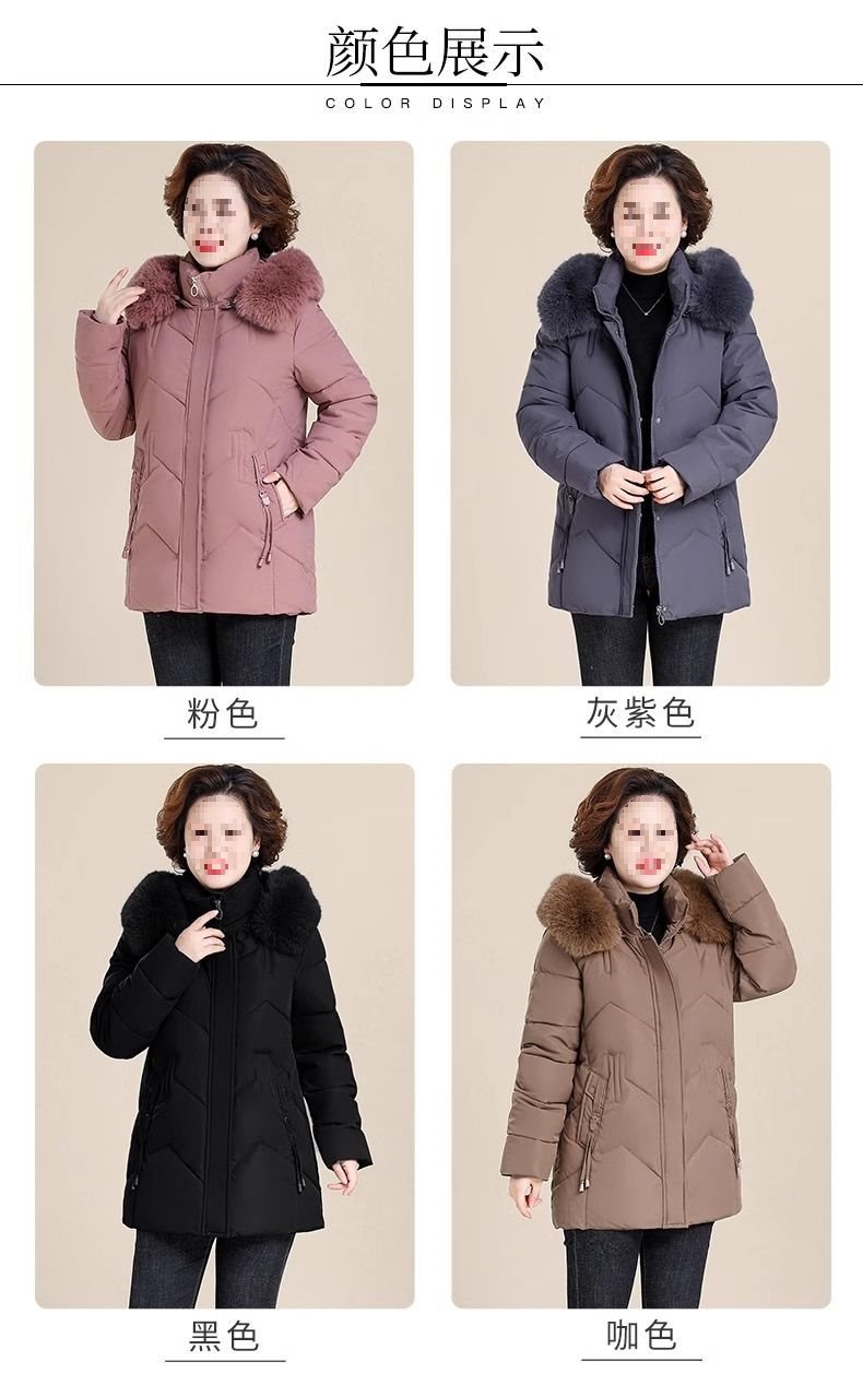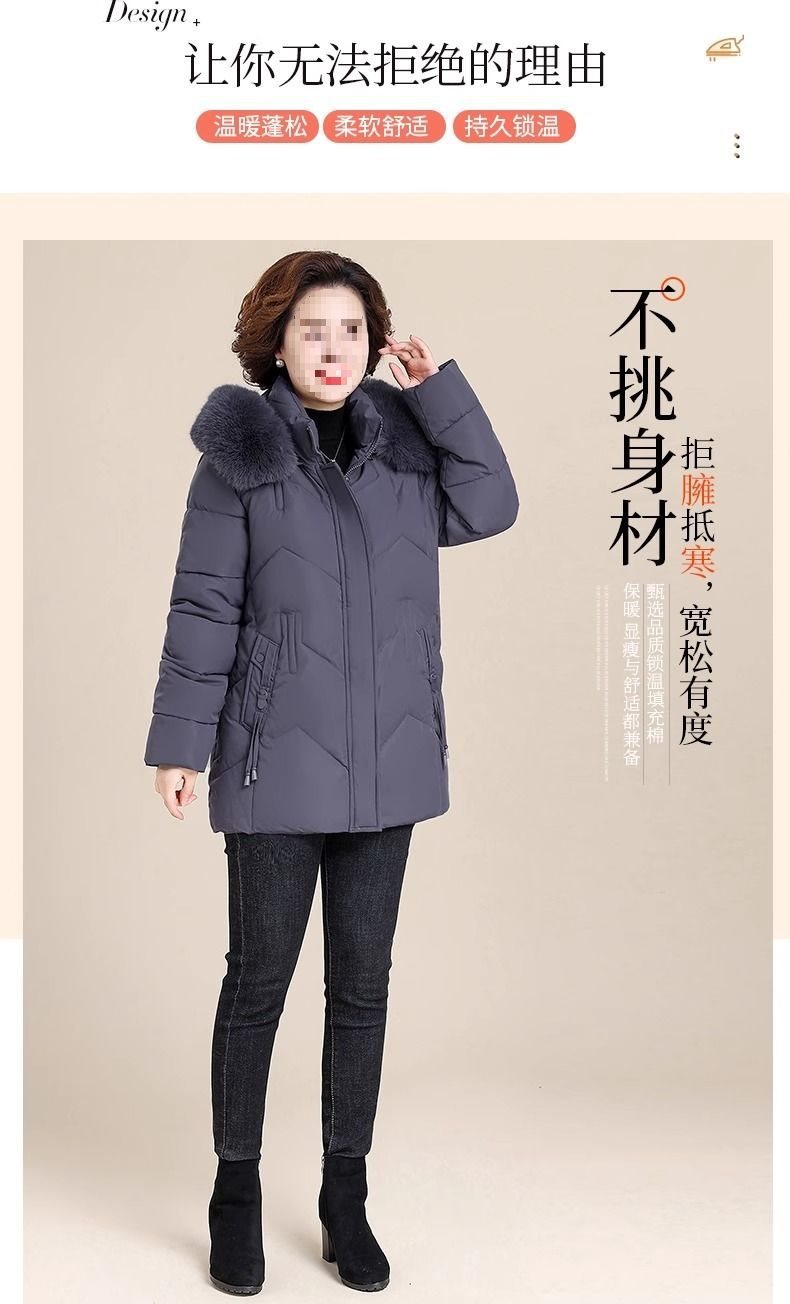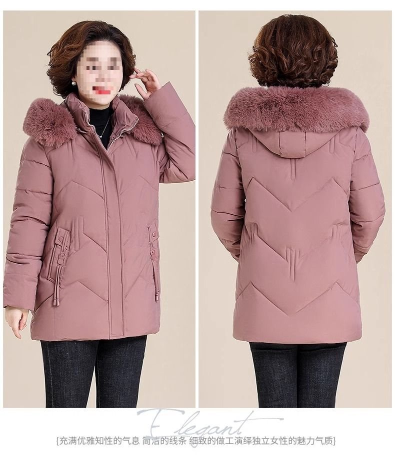 妈妈冬装外套加绒加厚羽绒棉服中长款小个子中老年女棉衣冬季袄子