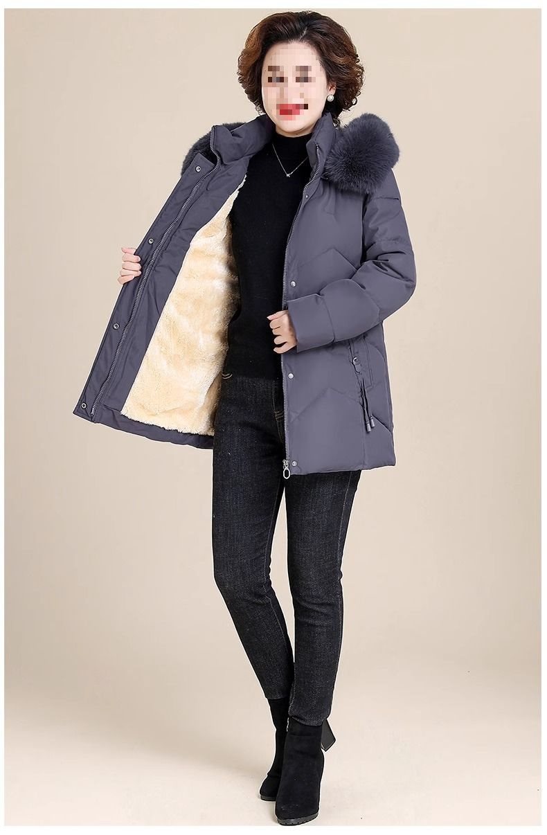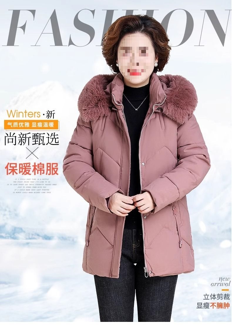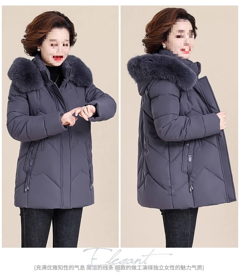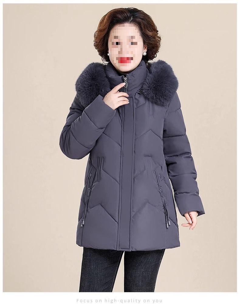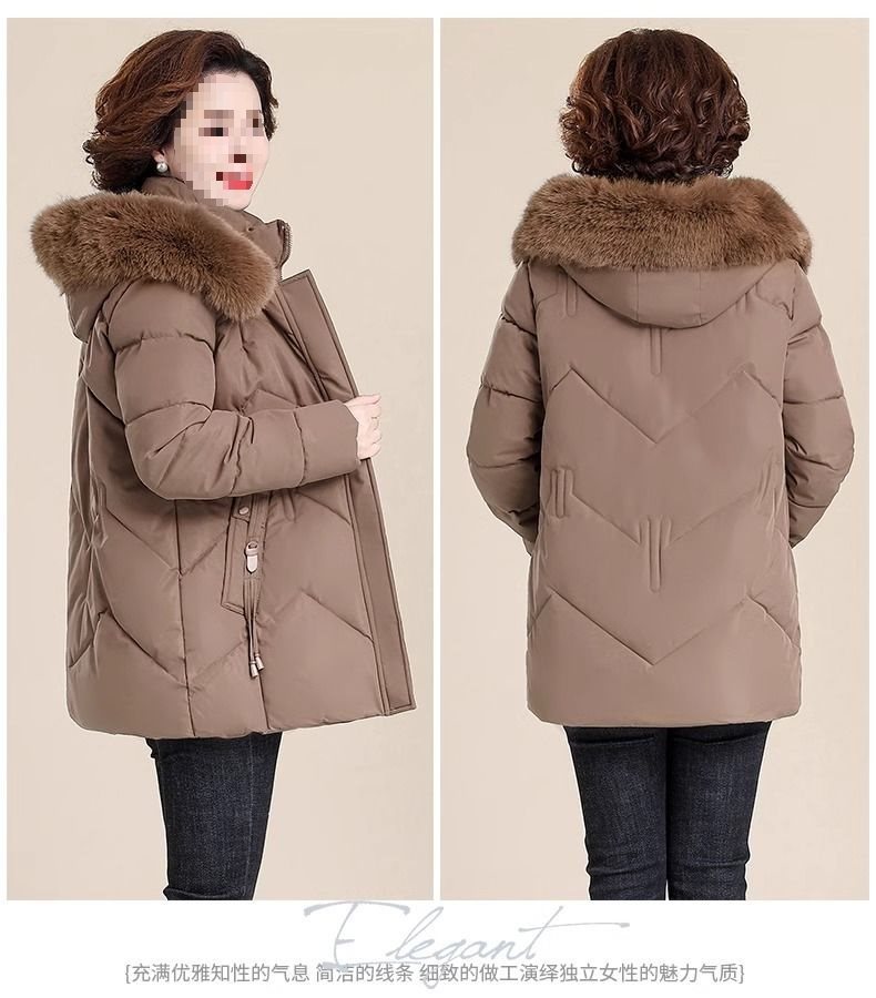妈妈冬装外套加绒加厚羽绒棉服中长款小个子中老年女棉衣冬季袄子