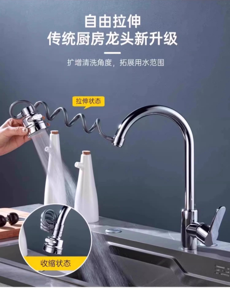 厨房延长管通用增压防溅万向头花洒抽拉弹簧水龙头延伸器万能接头
