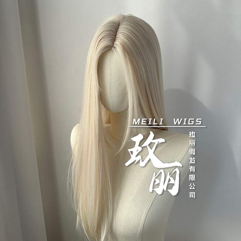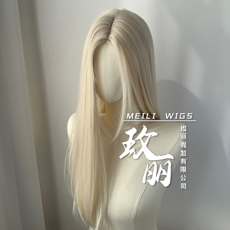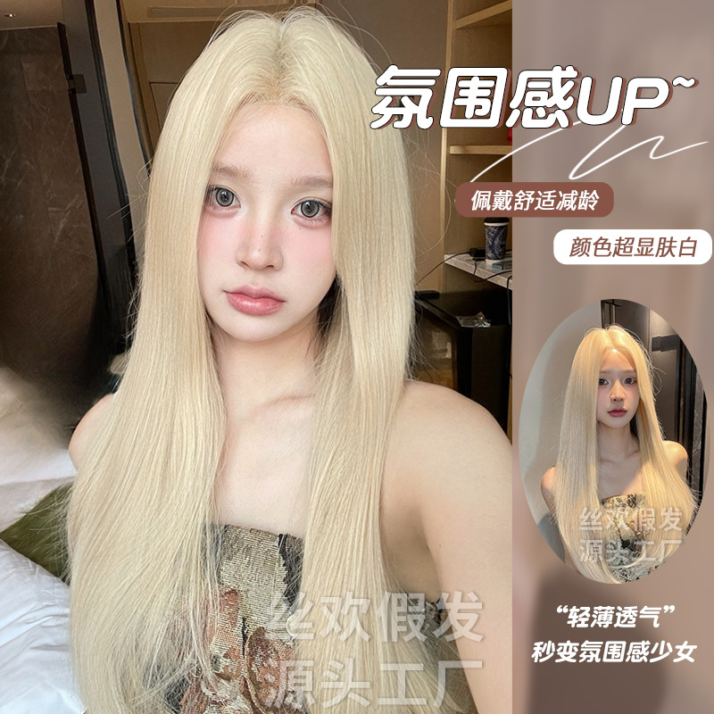 时尚女士假发 浅金色中分长直发气质自然仿真头皮整顶全头套假发